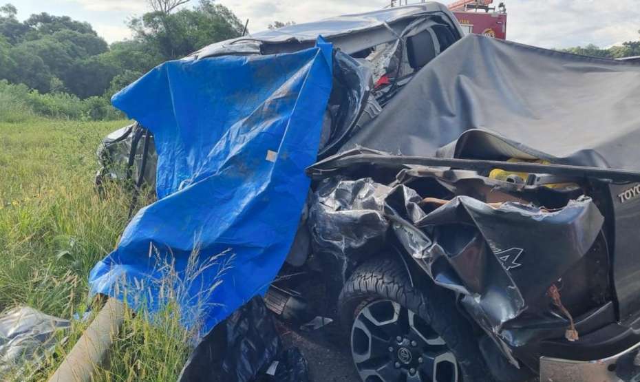 Colisão entre caminhonete e carreta deixa uma pessoa morta e três feridas