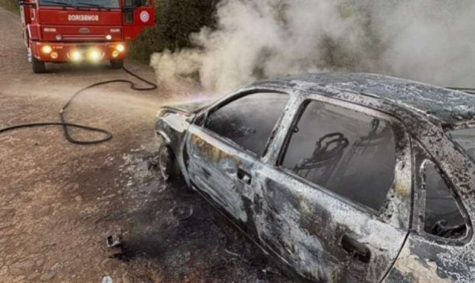 Incêndio destrói veículo no interior de Lagoa Vermelha