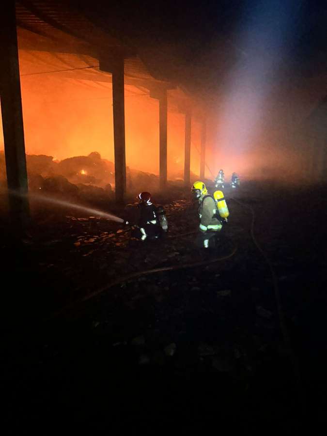Fogo foi combatido com grande volume de água e auxílio de draga, sendo extinto apenas na manhã seguinte; não houve feridos