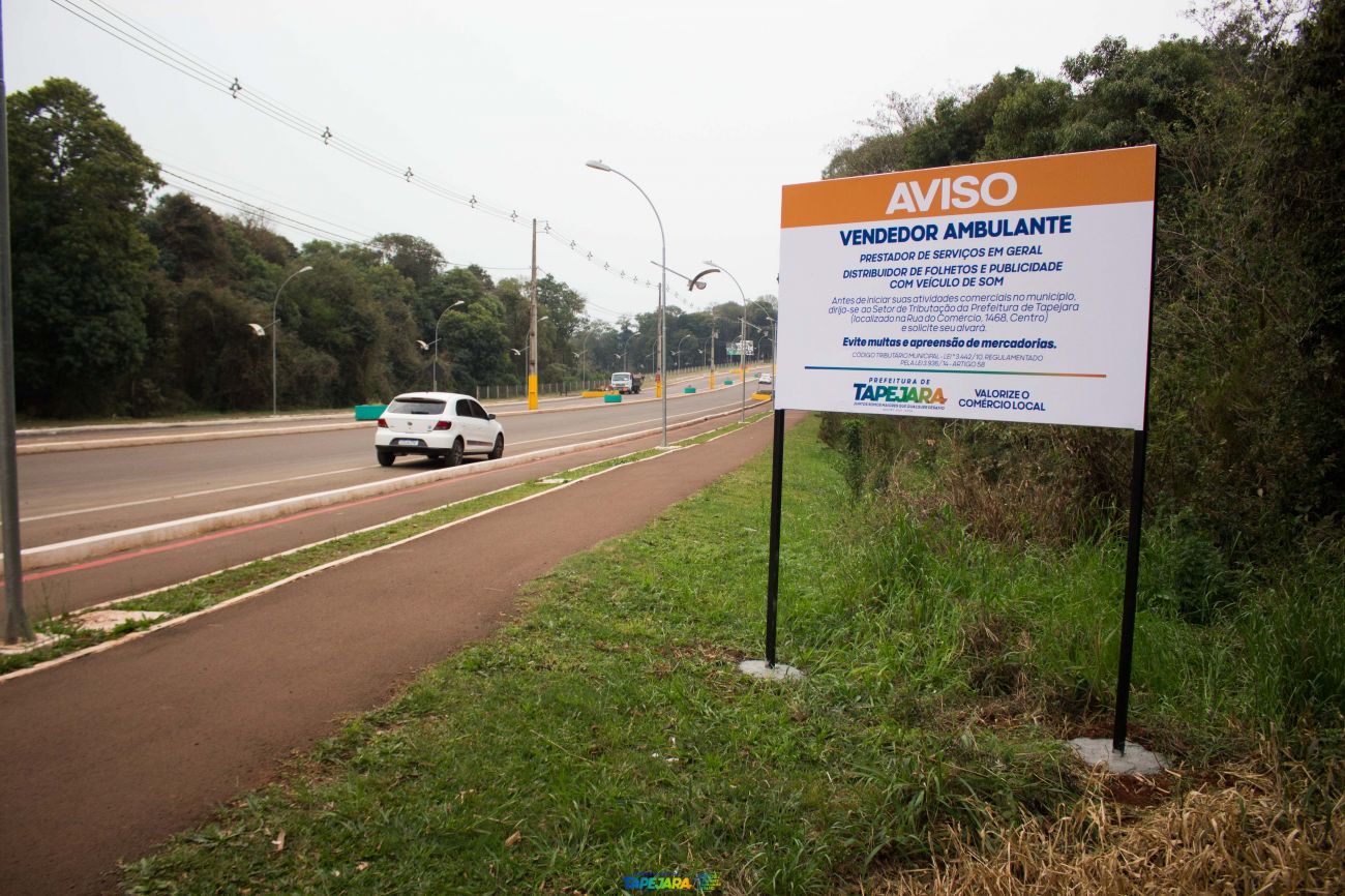 De acordo com secretário da Fazenda, Sergio Federle, a medida atende a uma antiga solicitação de diversos setores comerciais tapejarenses. “Percebemos que muitos comerciantes se sentiam lesados pela concorrência desleal que outros comerciantes, oriundos de municípios vizinhos ou até mesmo de outros estados, vinham praticando com a venda de produtos sem a devida licença”, destacou Federle ao mencionar que foram colocadas sete placas distribuídas entre os acessos de entrada do município e as duas praças.