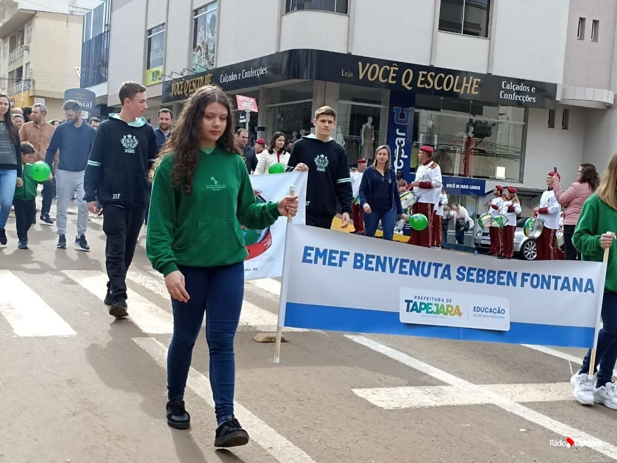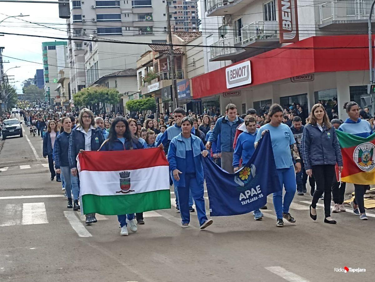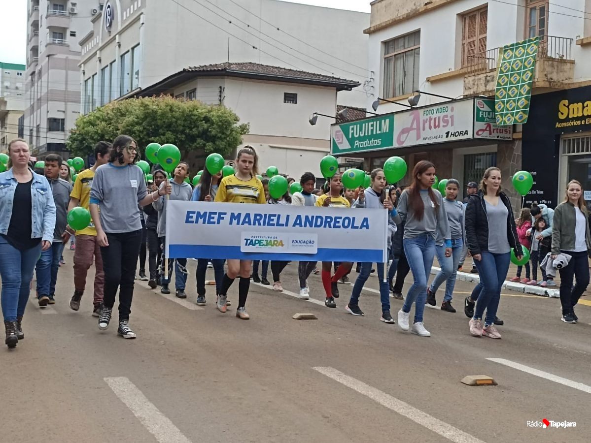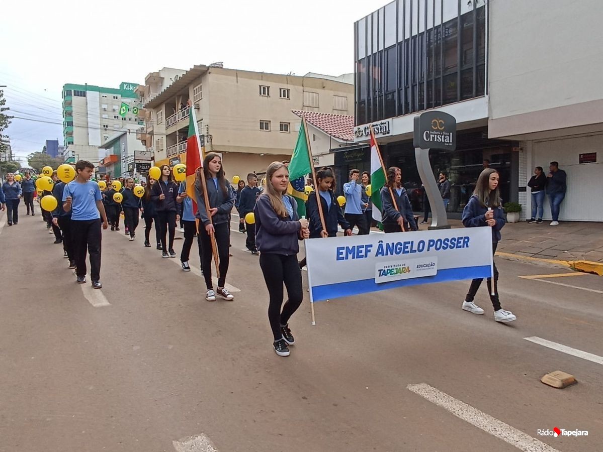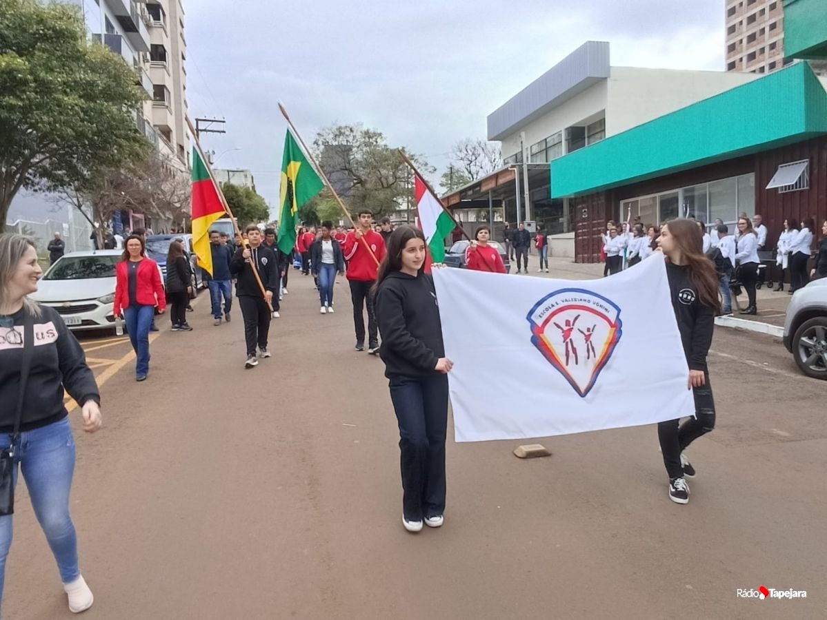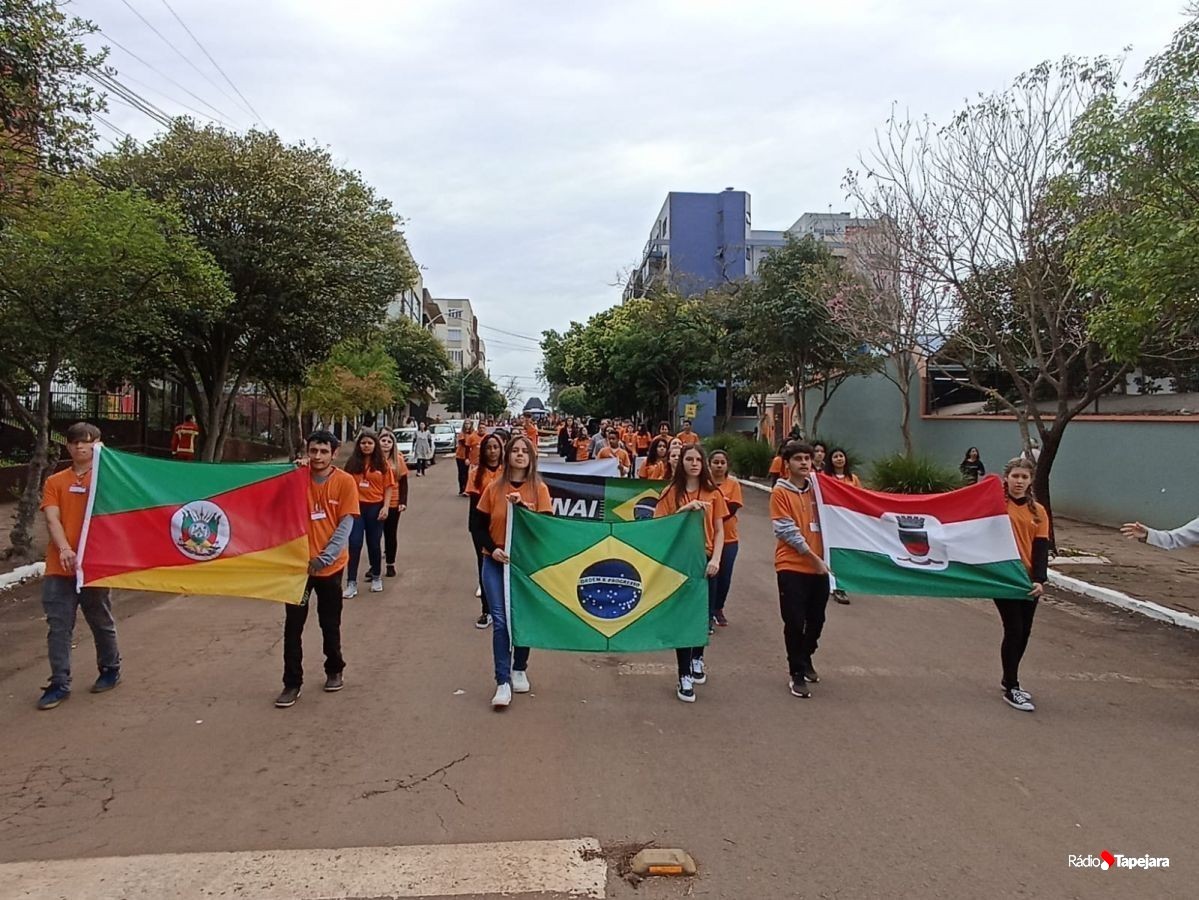 E hoje escolas, entidades, associações, militares, vão às ruas para demonstração de amor à Pátria. Aqui em Tapejara o desfile Cívico iniciou às 9 horas com hasteamento dos pavilhões e um lindo desfile pela Rua do Comércio, contemplando 40 pelotões.