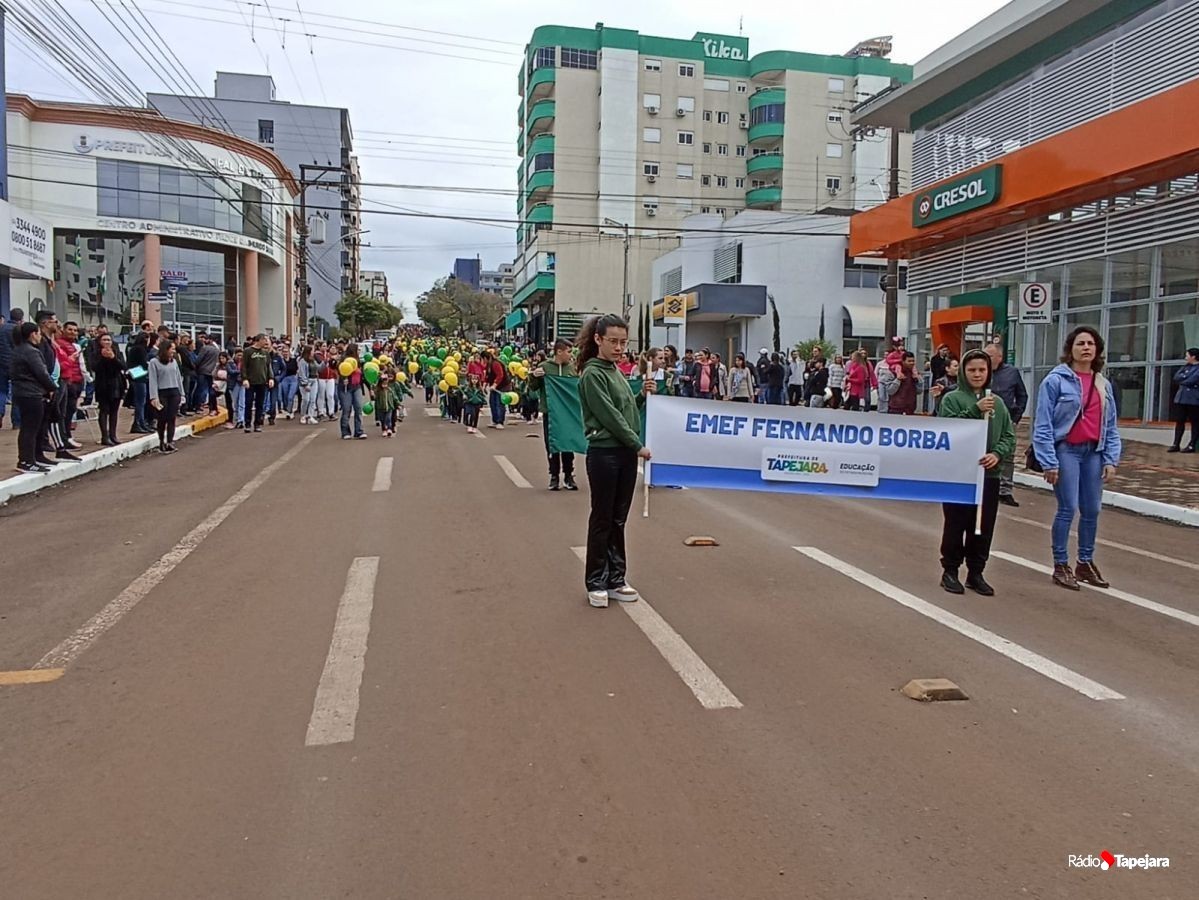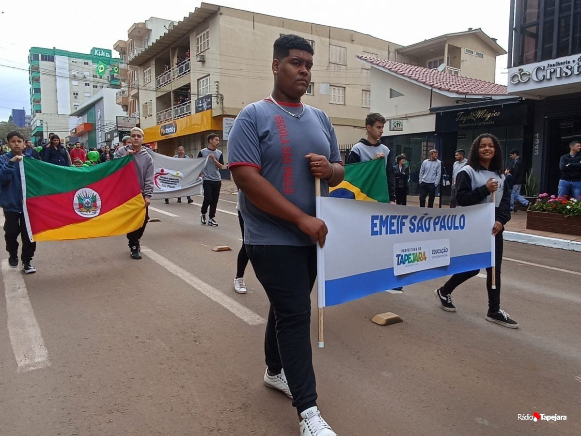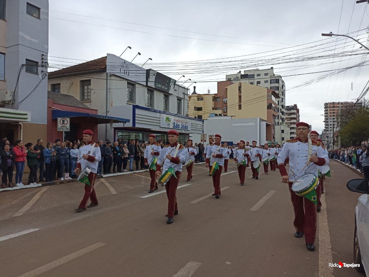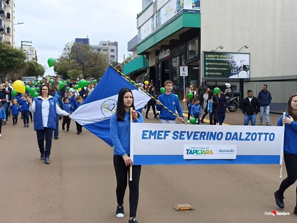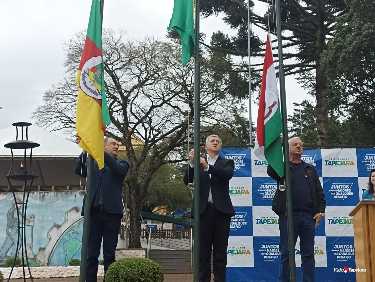 E hoje escolas, entidades, associações, militares, vão às ruas para demonstração de amor à Pátria. Aqui em Tapejara o desfile Cívico iniciou às 9 horas com hasteamento dos pavilhões e um lindo desfile pela Rua do Comércio, contemplando 40 pelotões.