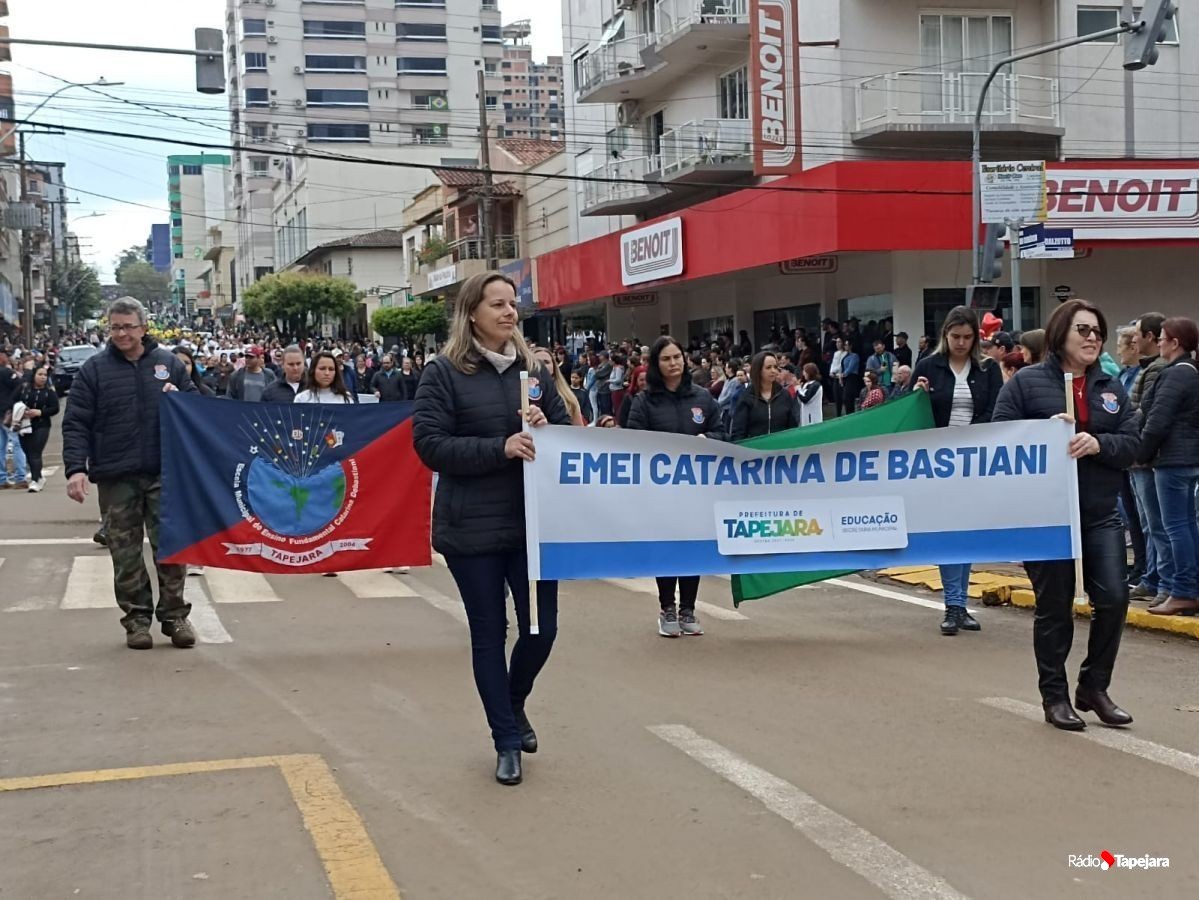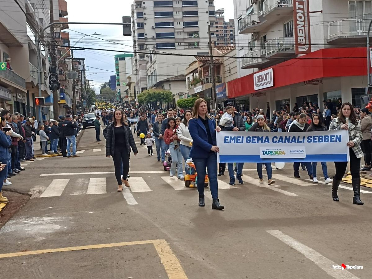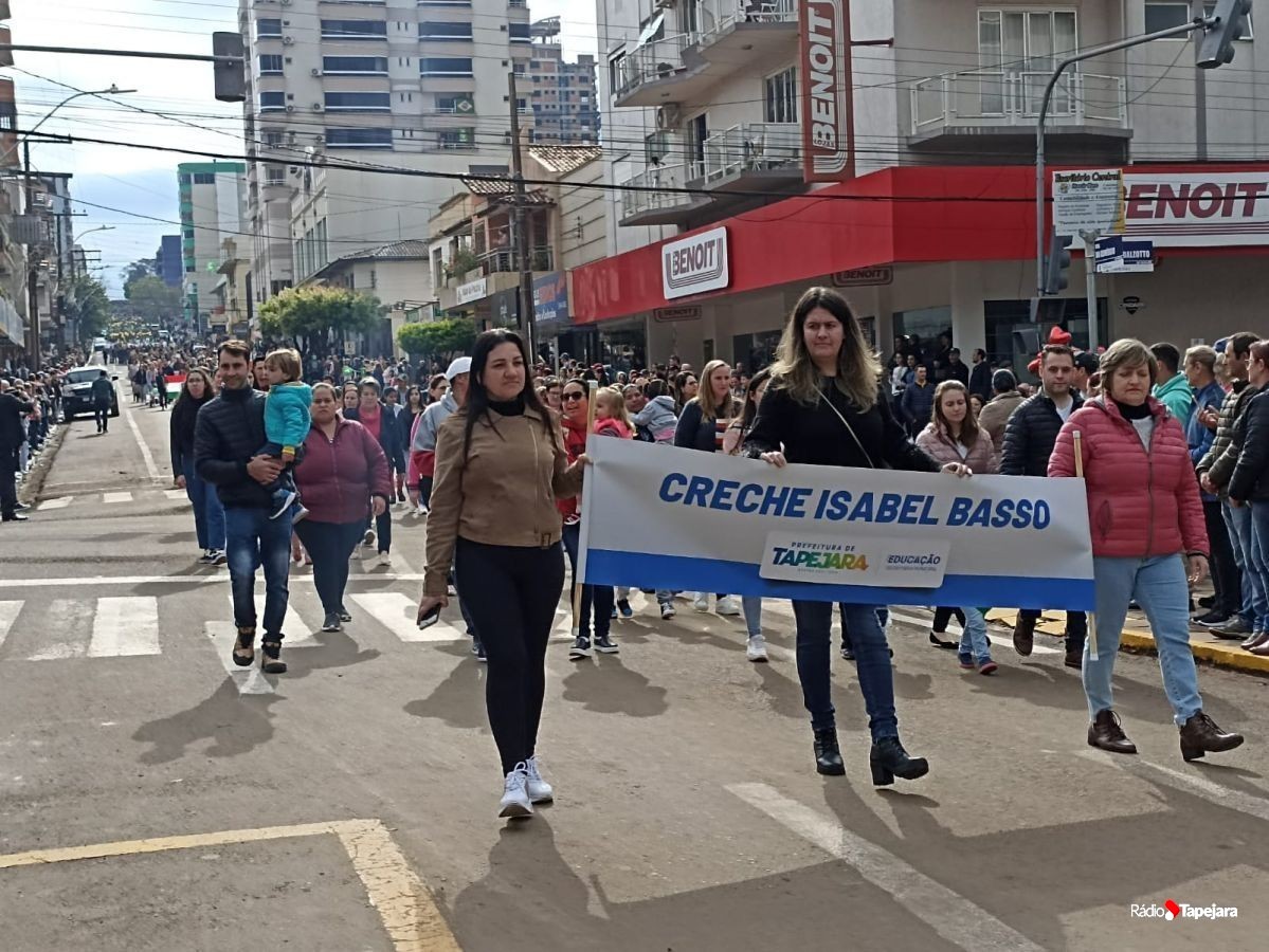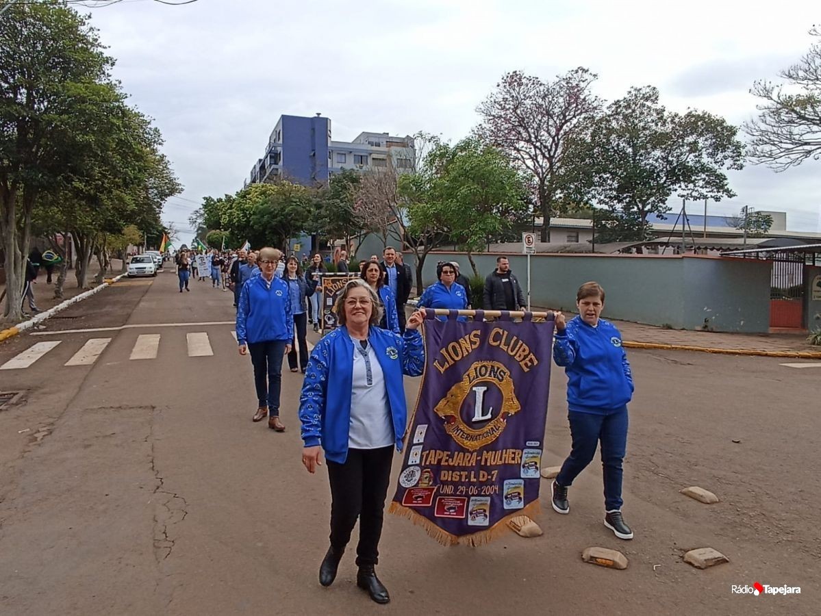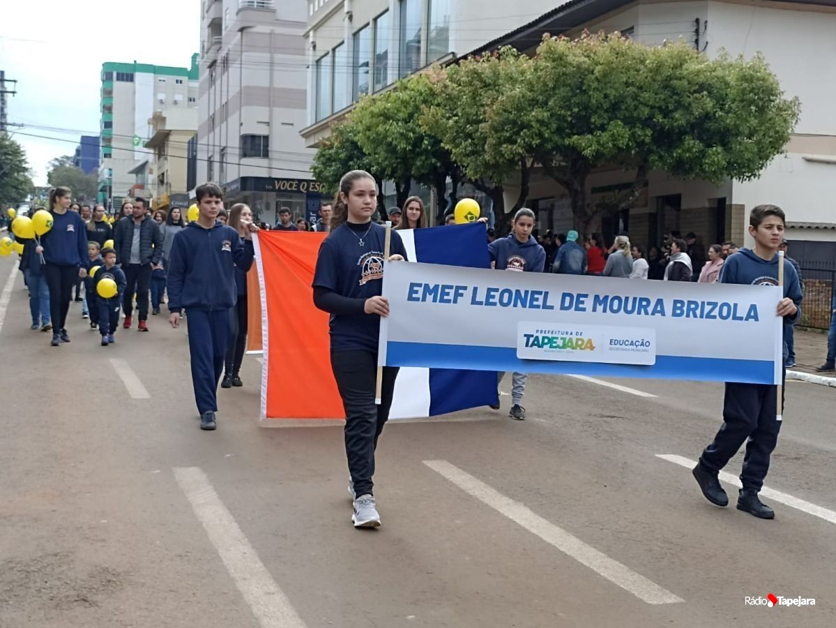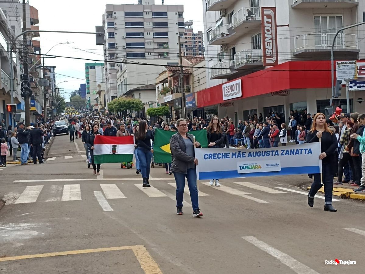 E hoje escolas, entidades, associações, militares, vão às ruas para demonstração de amor à Pátria. Aqui em Tapejara o desfile Cívico iniciou às 9 horas com hasteamento dos pavilhões e um lindo desfile pela Rua do Comércio, contemplando 40 pelotões.