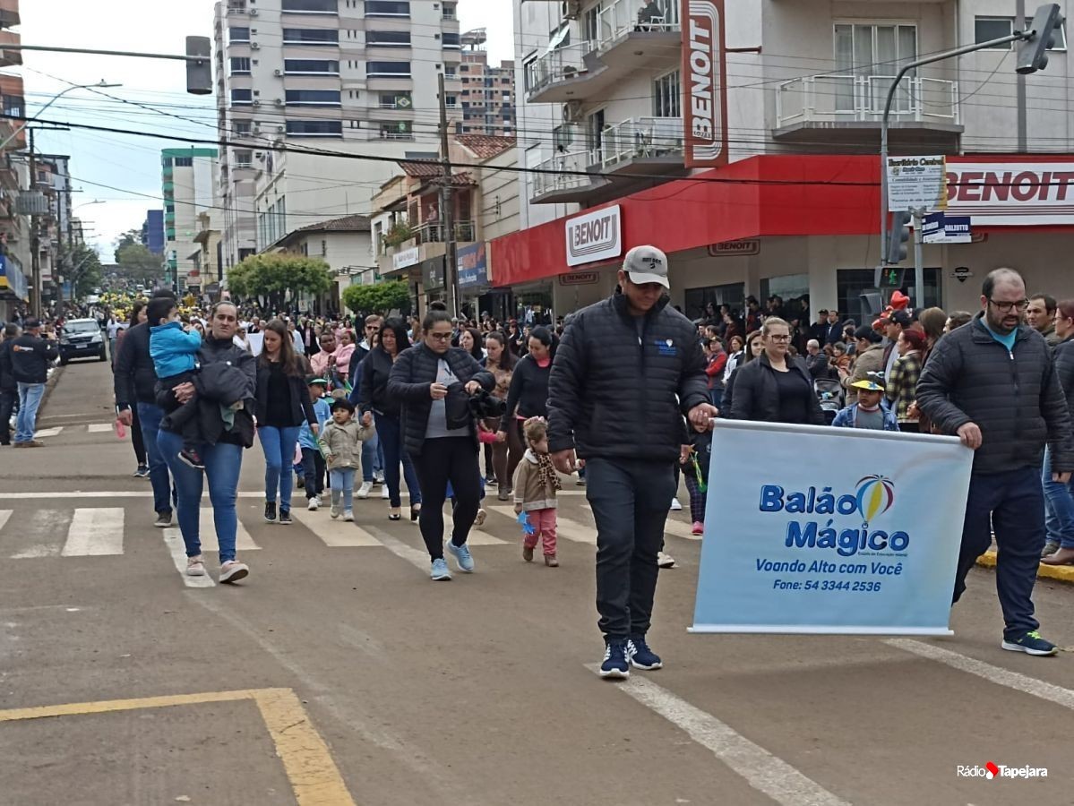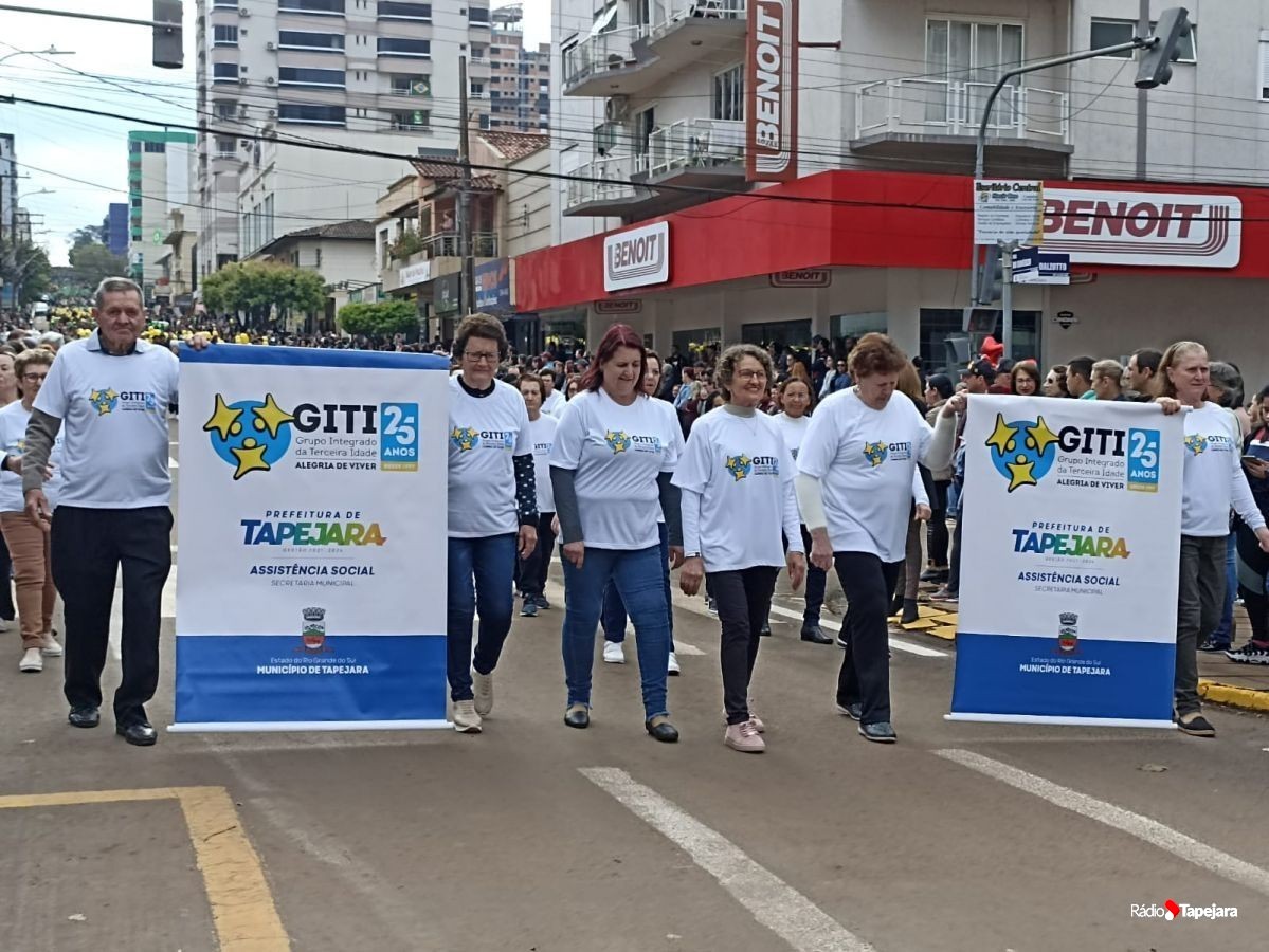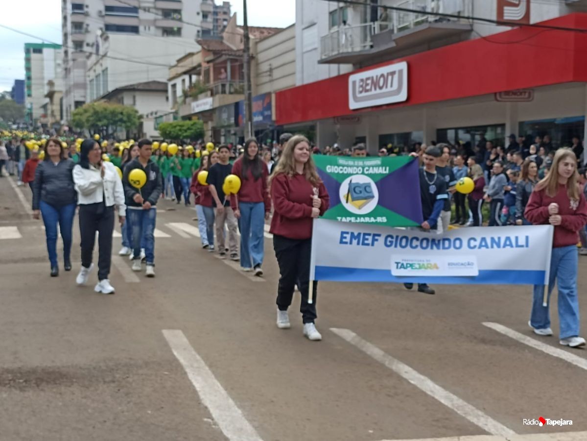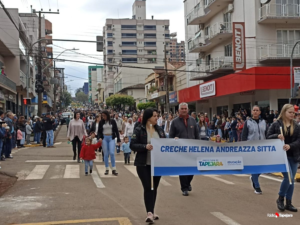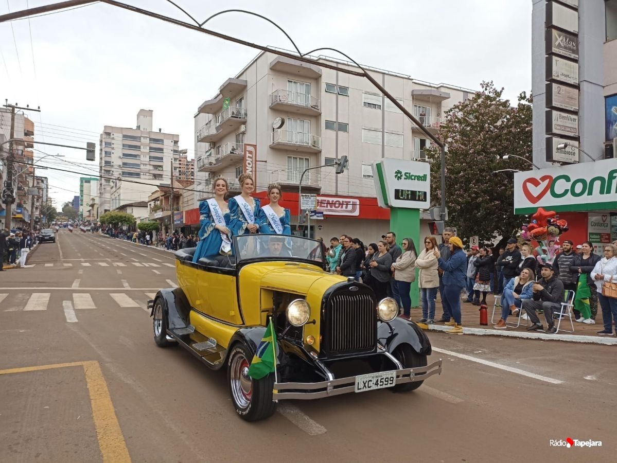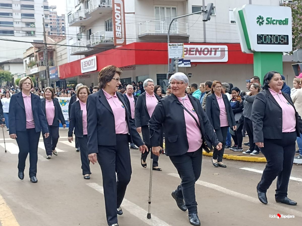 E hoje escolas, entidades, associações, militares, vão às ruas para demonstração de amor à Pátria. Aqui em Tapejara o desfile Cívico iniciou às 9 horas com hasteamento dos pavilhões e um lindo desfile pela Rua do Comércio, contemplando 40 pelotões.