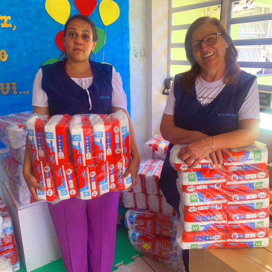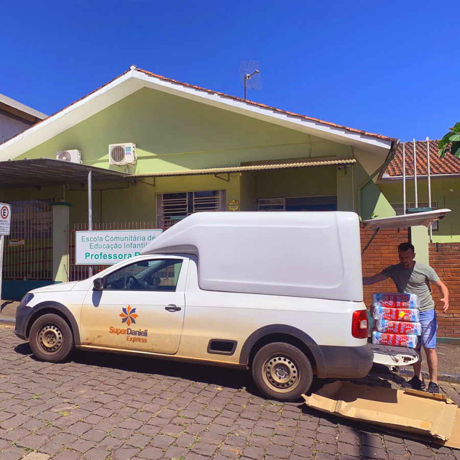 As doações foram feitas em produtos a pedido das próprias escolas. Lenços umedecidos e fraldas infantis são necessidades neste momento de recuperação. Direção e colaboradores dos supermercados e Atacarejo Danieli agradecem aos seus clientes pela participação na campanha.