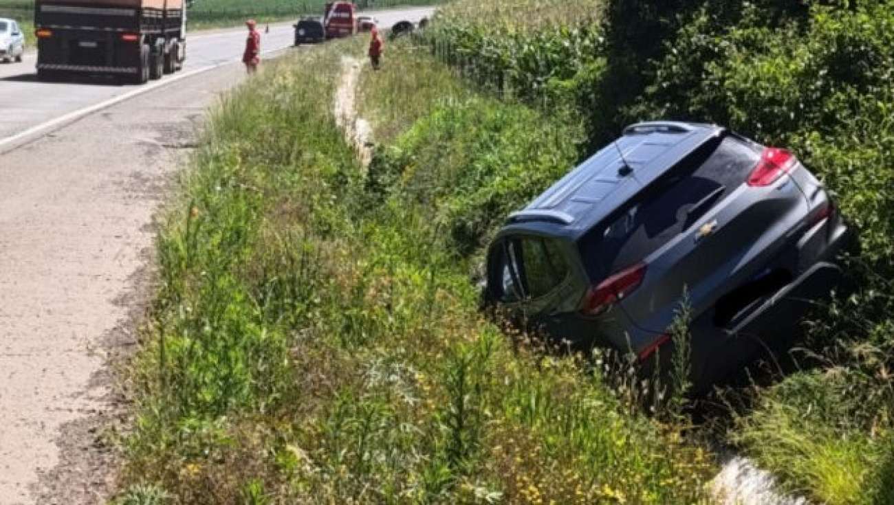 De acordo com as informações, o acidente envolveu um GM Ônix e uma GM Tracker, que saiu da pista.