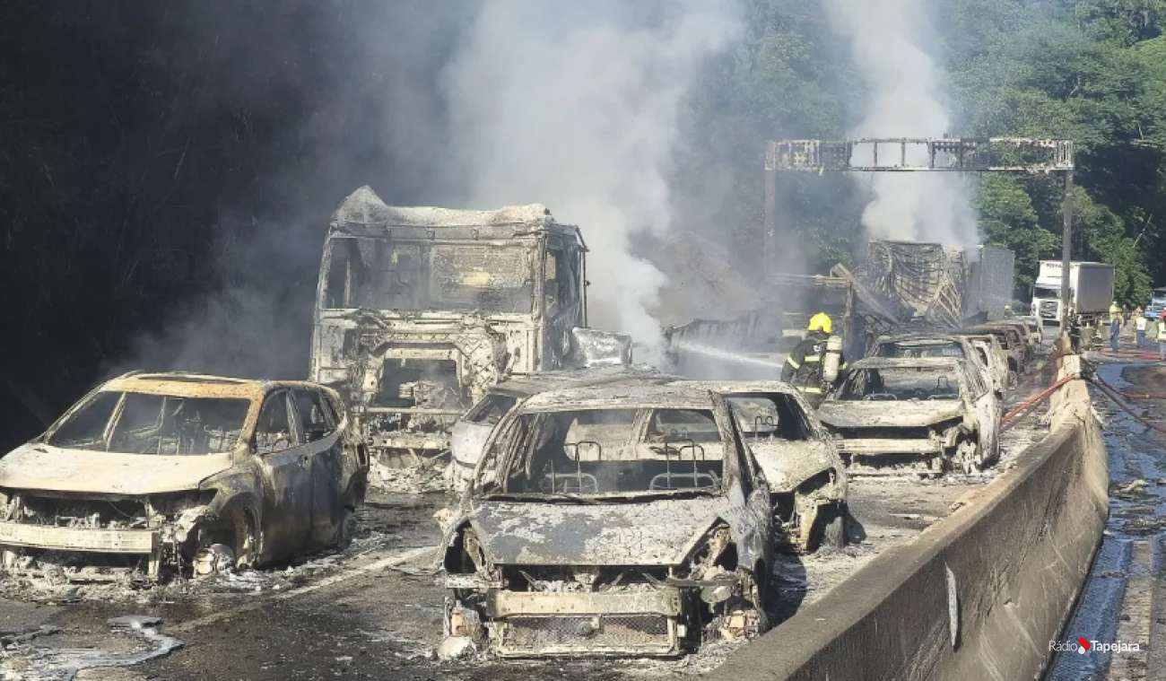As chamas se alastraram rapidamente para outros veículos que estavam parados nas proximidades por conta do acidente. Segundo a concessionária Arteris Litoral Sul, 24 carros e três carretas foram destruídos pelo fogo. Diversas pessoas ficaram feridas, mas, felizmente, não houve vítimas fatais.