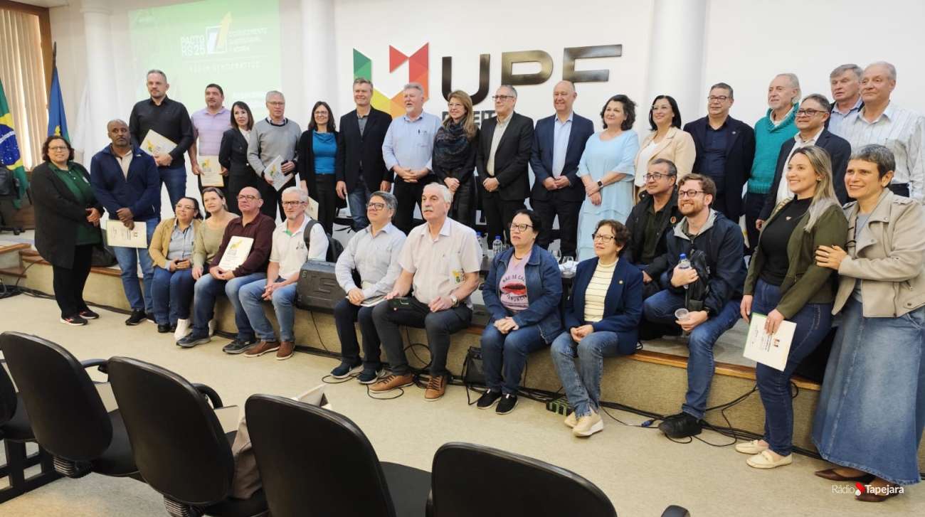 O 7º Seminário do Fórum Democrático Pacto RS 25 foi realizado nesta segunda-feira (1º), no Auditório da Escola de Direito da Universidade de Passo Fundo (UPF), e reuniu lideranças de seis Conselhos Regionais de Desenvolvimento (COREDEs), especialistas e representantes do poder público. Promovido pela Assembleia Legislativa do Rio Grande do Sul (ALRS), o encontro teve como objetivo construir diretrizes para o desenvolvimento sustentável do estado, com ênfase na adaptação às mudanças climáticas e na realidade de cada região.