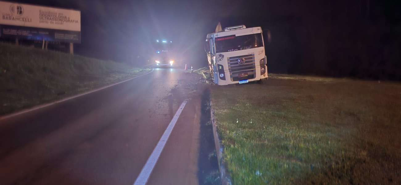 Foi registrada, na madrugada desta sexta-feira (19), uma saída de pista no km 49 da RS-135, trevo de Estação.