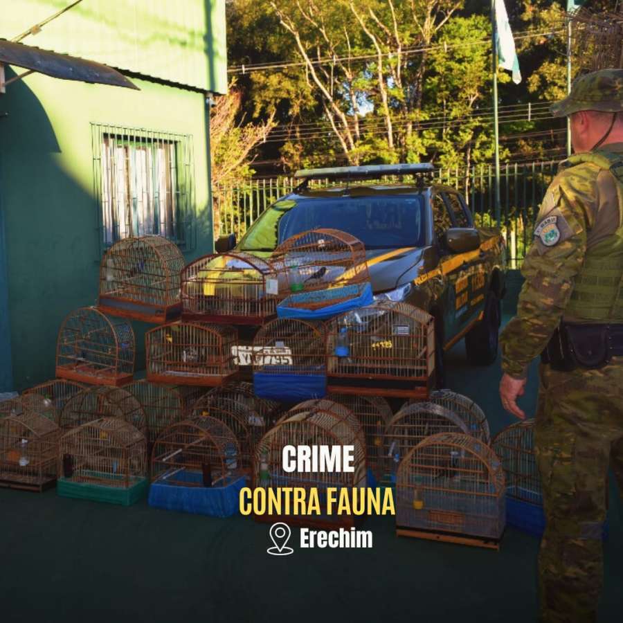 Nesta quinta-feira (25/09), a Brigada Militar, por meio do 3º Batalhão Ambiental (3º BABM), realizou duas ações distintas no município de Erechim que resultaram na apreensão de 24 aves silvestres mantidas irregularmente em cativeiro.