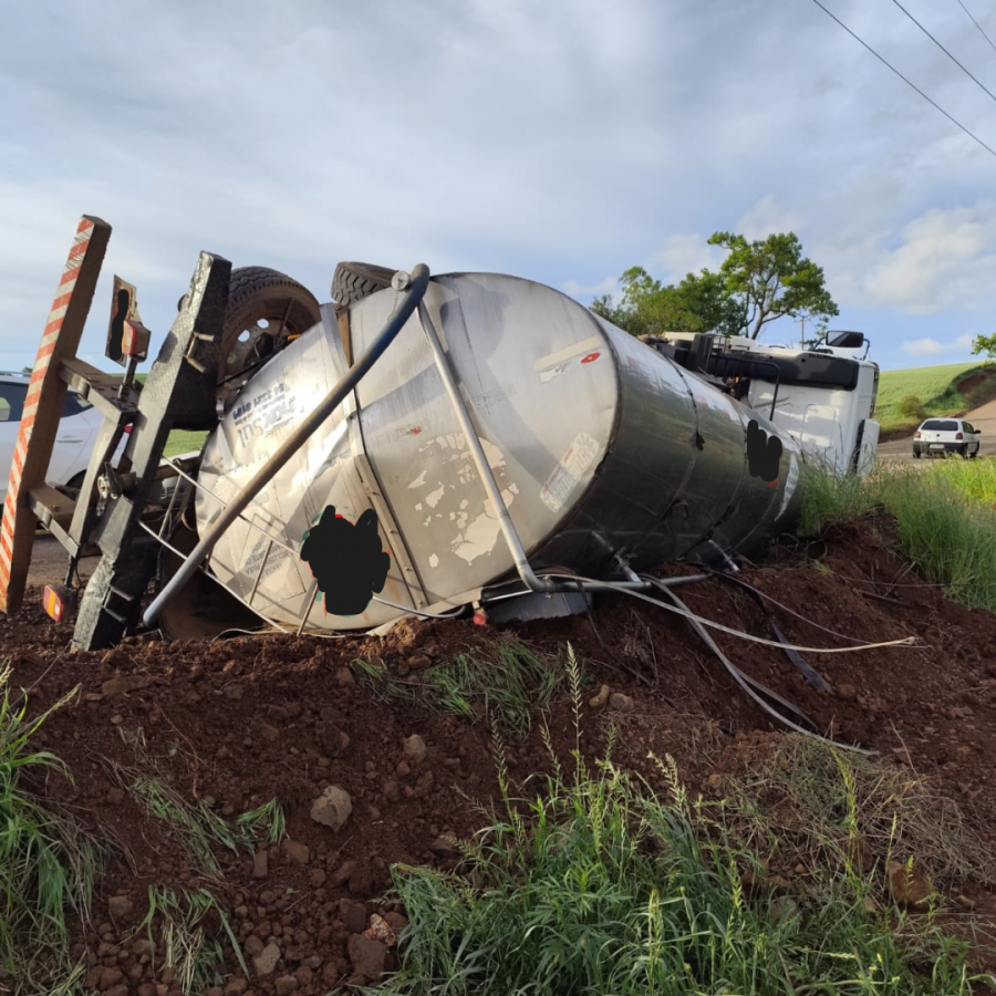 Na tarde desta quarta-feira (1), um caminhão de leite tombou na RS-428, em trecho próximo à divisa entre os municípios de Tapejara e Água Santa.