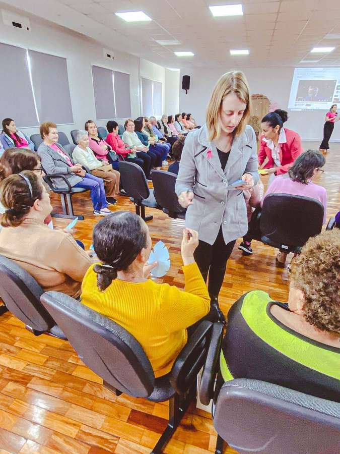 A atividade aconteceu no Salão Nobre Municipal, reunindo autoridades locais, profissionais da área e, principalmente, os idosos do município.
