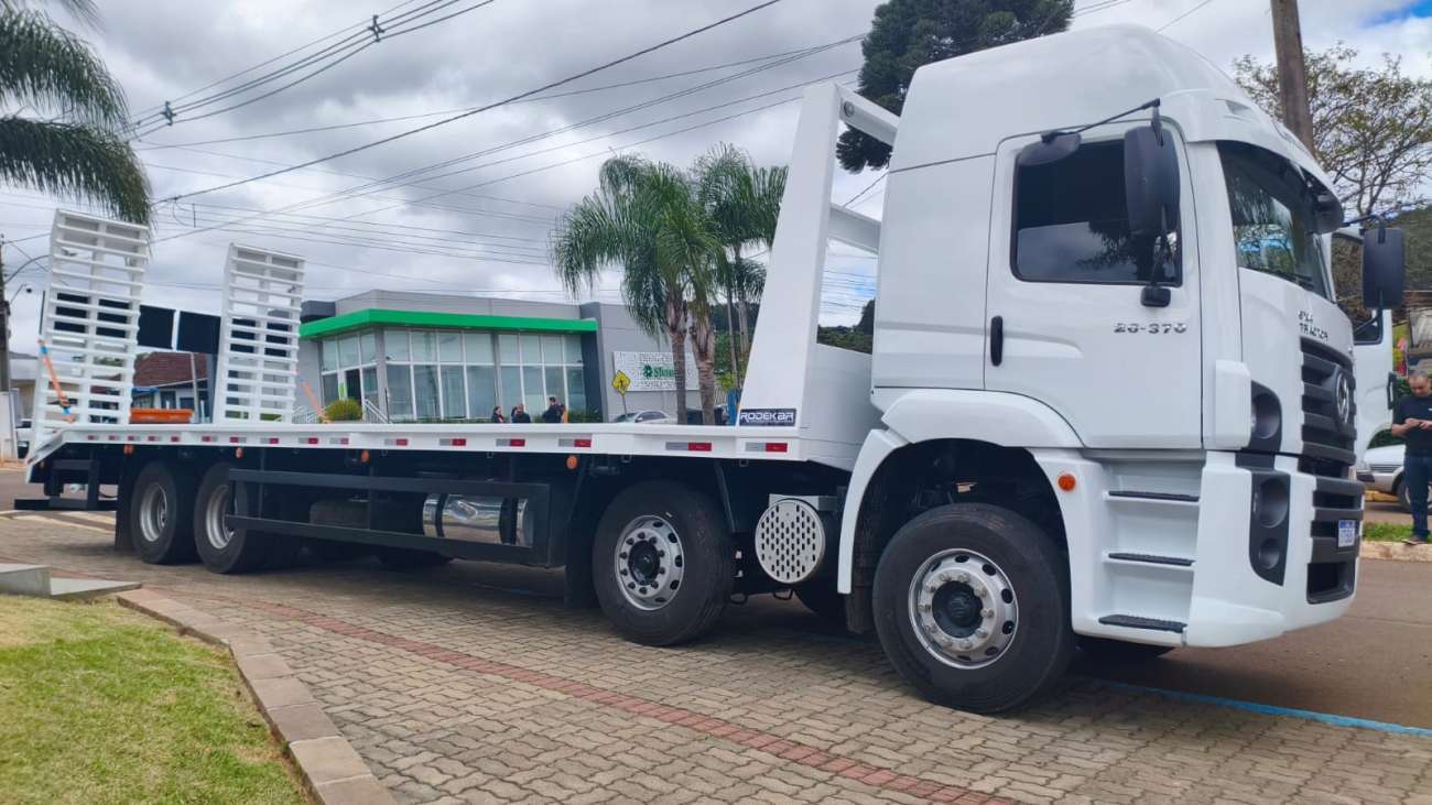 O município de Santa Cecília do Sul adquiriu um caminhão prancha no valor de R$ 398 mil, com recursos próprios. O novo veículo será utilizado no transporte de máquinas e equipamentos, contribuindo para o reforço e modernização da frota municipal.