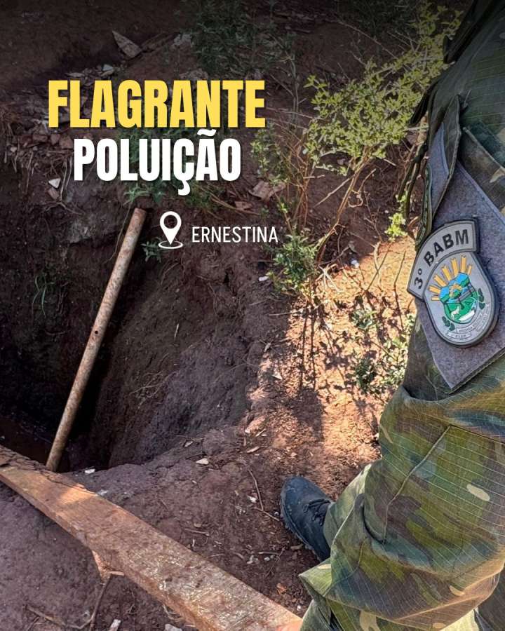 Brigada Militar, através do 3º Batalhão Ambiental (BABM), flagrou, nesta quarta-feira (22/10), poluição no solo, em uma propriedade no município de Ernestina.