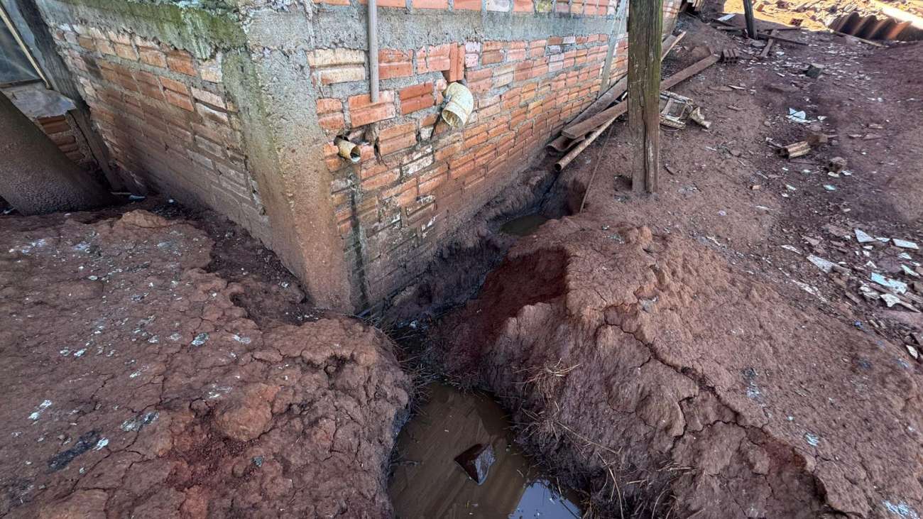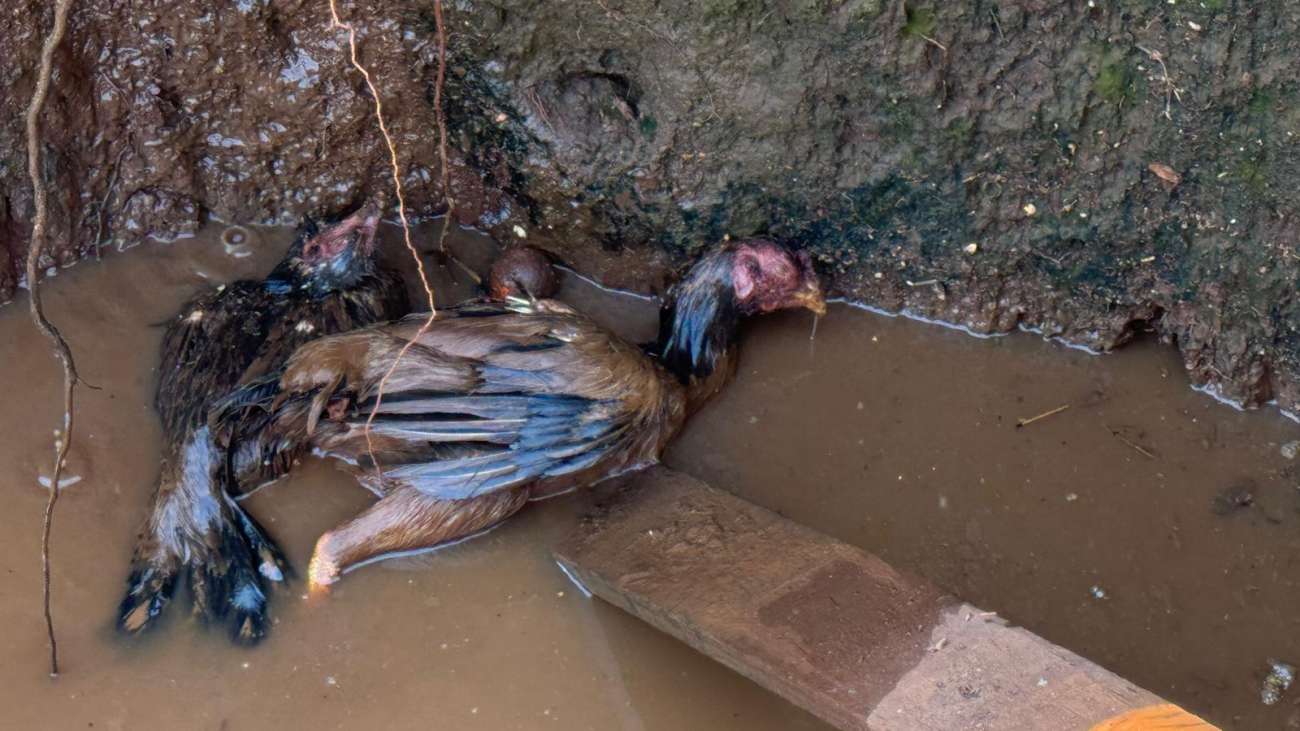 Através de denúncia, os policiais militares flagraram duas valas escavadas no solo, utilizadas para descarte ilegal de efluentes domésticos e outros rejeitos. As valas não possuíam qualquer tipo de impermeabilização, cobertura ou sistema de tratamento, desta forma contaminando o solo e trazendo riscos à saúde pública. Em uma das valas, a equipe do 3º BABM encontrou aves mortas.