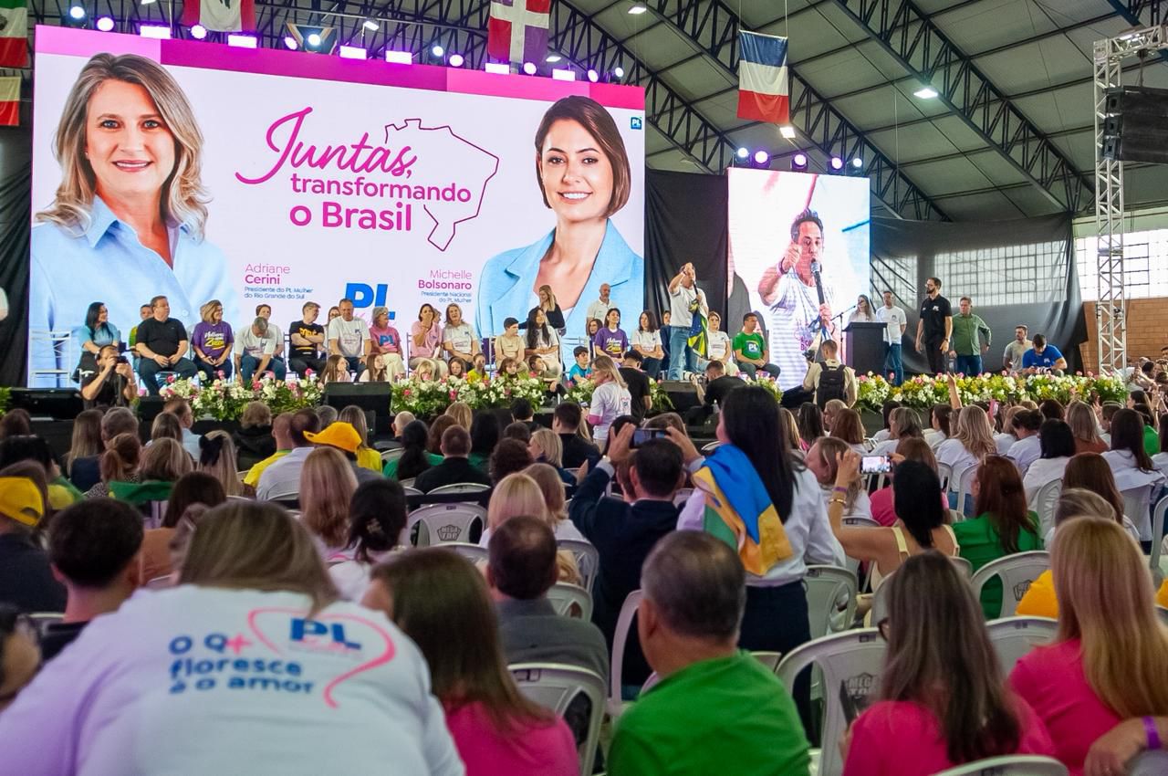 Durante seu pronunciamento, Michelle Bolsonaro destacou o papel de protagonismo do PL gaúcho, presidido no Estado pelo deputado federal Giovani Cherini, e reconheceu o PL gaucho como referência nacional em paridade e valorização feminina dentro da legenda.