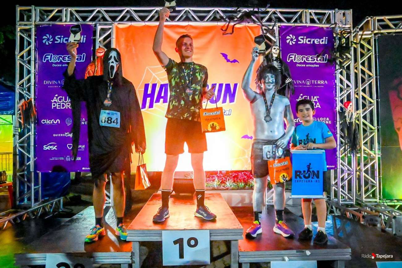 Na 1ª Edição da Hallorun, em Lajeado, os tapejarenses Dener Martinelli, Gabriela Souza Morais e Tassiane Afonso Scariot participaram da corrida de 6 km. Dener conquistou o 3º lugar na categoria 25 a 29 anos. O evento, com temática de Halloween, uniu esporte, criatividade e diversão, proporcionando uma experiência única aos corredores. Os atletas de Tapejara participaram fantasiados de Freddie Mercury, em uma prova que, segundo eles, foi marcada pela amizade, união e alegria — mais do que uma competição, uma celebração de memórias e boas histórias.