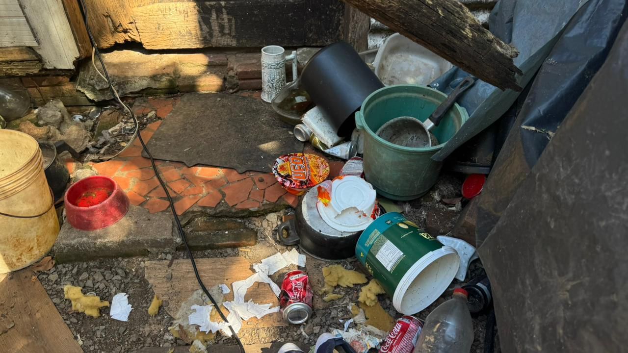 Os animais estavam visivelmente magros, com escore corporal muito abaixo do ideal, e o local era sujo e inadequado para abrigar os cães. A tutora dos animais foi identificada e recebeu voz de prisão pelo crime de maus-tratos, sendo conduzida à Delegacia de Polícia.