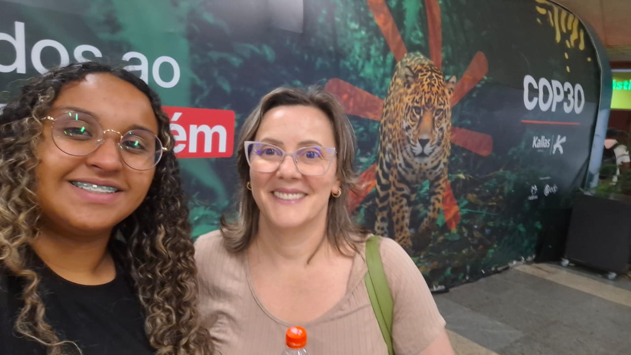 A aluna Victória Luisa Daniel e Silva, do 3º ano do Ensino Médio da Escola Estadual Cláudio Antônio Benvegnú, de Água Santa, está participando da COP30, em Belém (PA). Ela viajou acompanhada da professora Simone Estela Coser dos Reis para integrar atividades oficiais do evento nos dias 18 e 19 de novembro.
