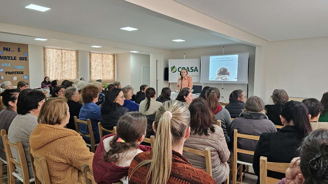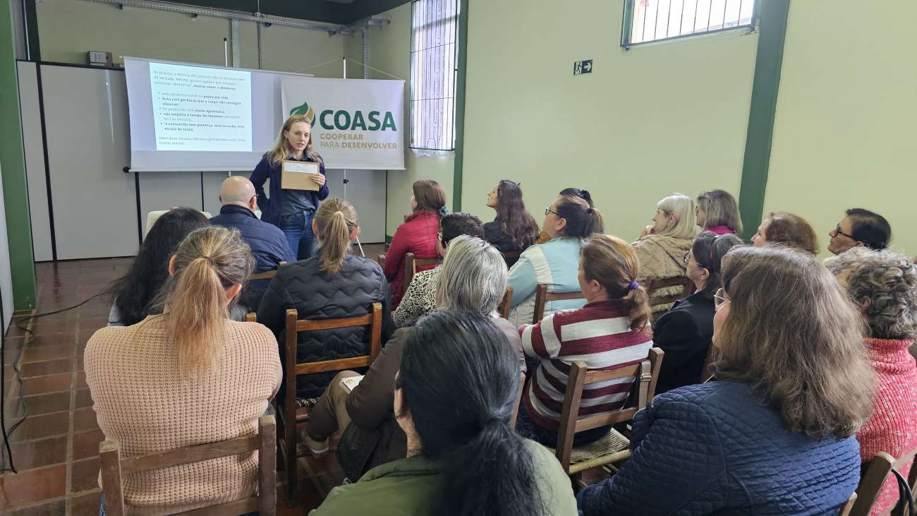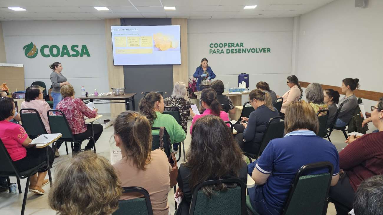 A Coasa concluiu, neste mês, o ciclo anual de atividades do Programa Consumo Sustentável, iniciativa permanente e voltada à orientação de associadas sobre saúde, bem-estar, uso consciente de recursos e práticas de autocuidado. O programa desenvolveu, ao longo de 2025, uma série de encontros nos municípios da área de atuação da cooperativa, com cursos e palestras conduzidos por profissionais convidadas e por agricultoras associadas.