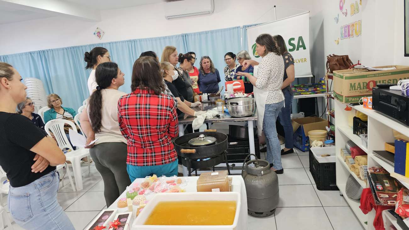 O programa também estimulou práticas tradicionais de produção caseira, com o curso de Saboaria Natural, ministrado pela agricultora associada Vânia Aimi Dalri, em Água Santa e Mato Castelhano. As participantes aprenderam processos básicos de saponificação, formulações naturais e cuidados necessários para a produção segura de sabonetes para uso familiar. Essa etapa reforçou a proposta do programa de valorizar saberes locais e promover alternativas sustentáveis dentro das propriedades.