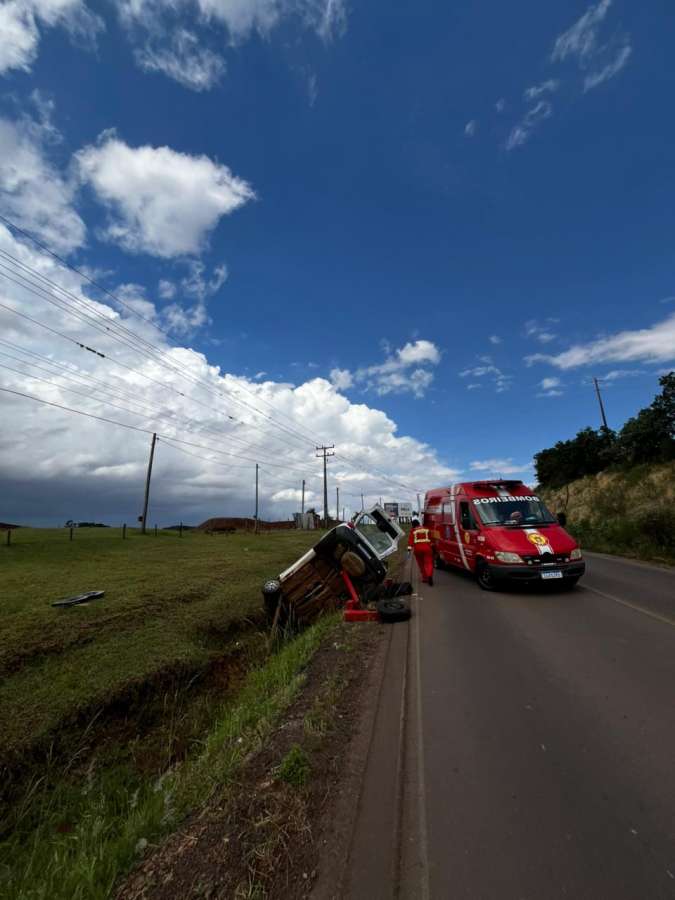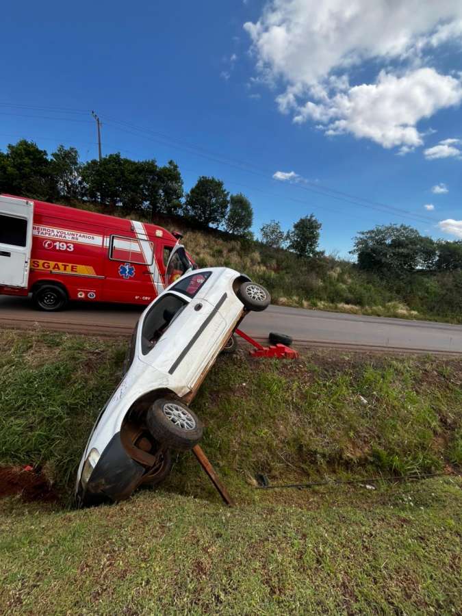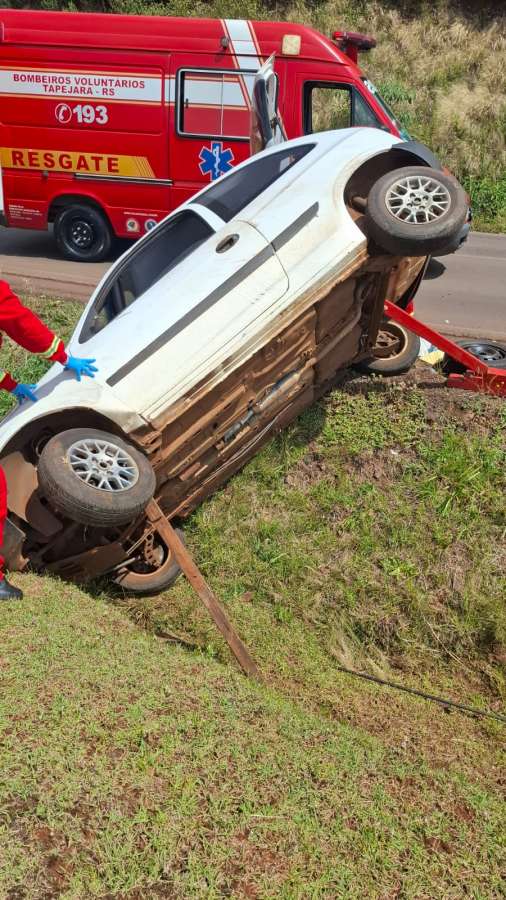 Um homem de 64 anos ficou ferido em um sinistro de trânsito, na tarde deste sábado (22), entre Tapejara e Coxilha. A vítima conduzia um GM Celta que saiu da pista e capotou.