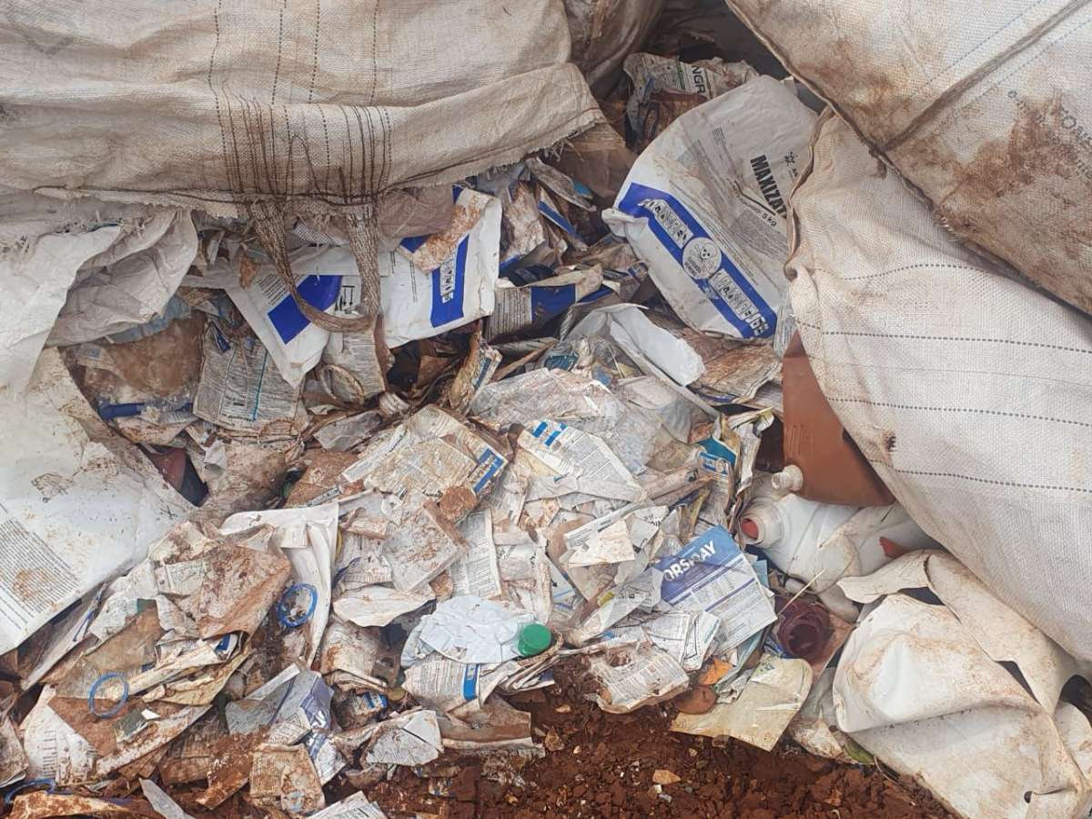 Os policiais identificaram que as embalagens de agrotóxicos estavam misturadas a outros vasilhames e eram trituradas com outros plásticos para posterior comercialização.