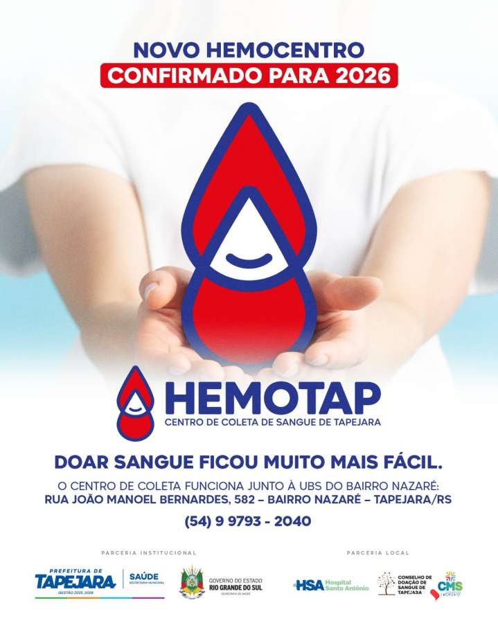 A comunidade de Tapejara recebeu um anúncio importante: será instalado um polo de coleta de sangue dentro do município. A implantação do serviço é fruto da colaboração entre a prefeitura municipal, o Hospital Santo Antônio, o Hemopasso e o Conselho de Doação de Sangue de Tapejara.