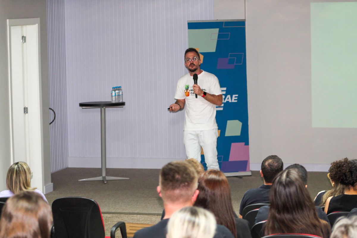 Em seguida, o comunicador e especialista em vendas Marcus Tonin, o Marketeiro Confesso, apresentou a palestra principal. Com foco em estratégias de marketing digital aplicadas ao varejo, Tonin destacou que comunicação é um processo que exige protagonismo das empresas. Segundo ele, “a comunicação não aceita desaforo”, reforçando que os negócios precisam assumir o controle de sua presença digital.