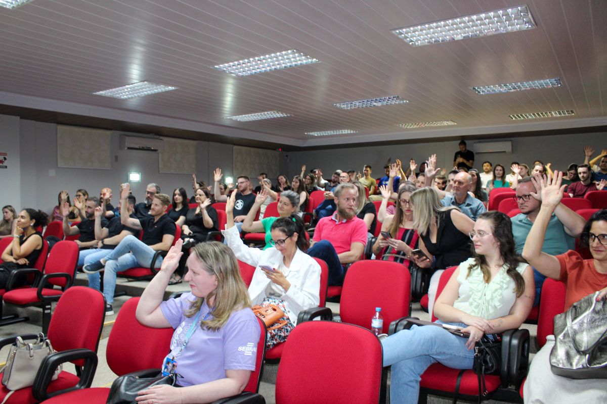 A Associação Comercial, Industrial, de Serviços e Agronegócios de Tapejara (Acisat) realizou na noite de quarta-feira (3) um encontro voltado ao fortalecimento do comércio e do empreendedorismo local. O evento ocorreu no auditório da Plasbil e reuniu empresários, autoridades e representantes de entidades, em uma ação conjunta entre Acisat, Prefeitura de Tapejara — por meio da Secretaria de Desenvolvimento Econômico, Inovação e Tecnologia — e Sebrae.