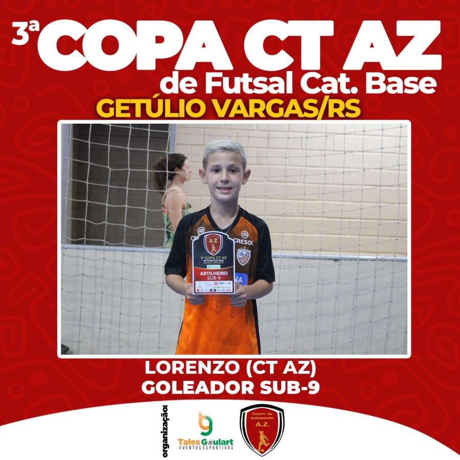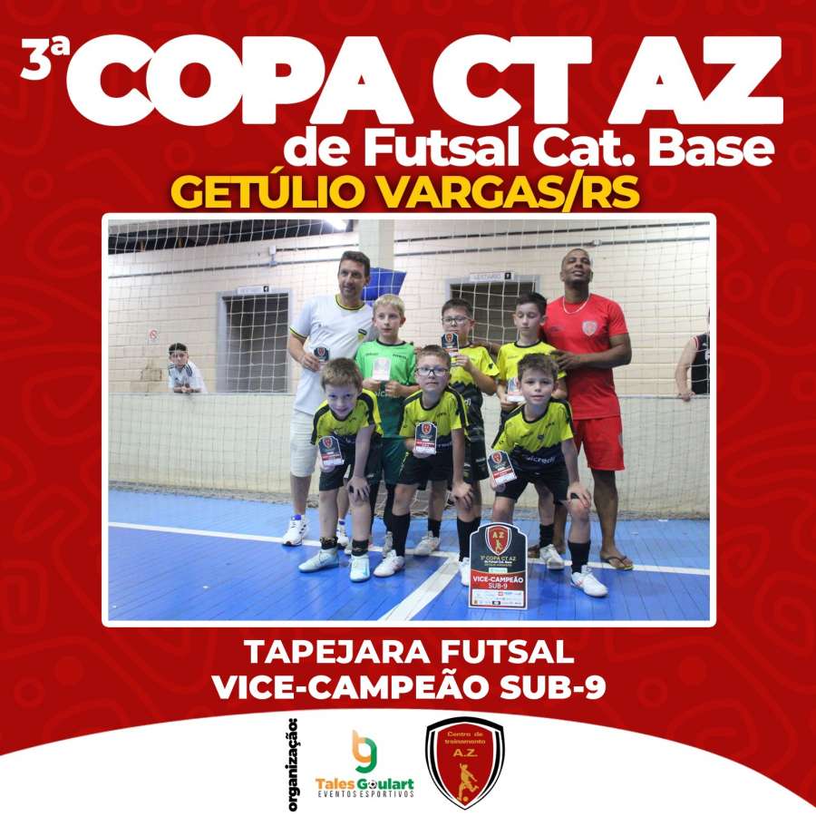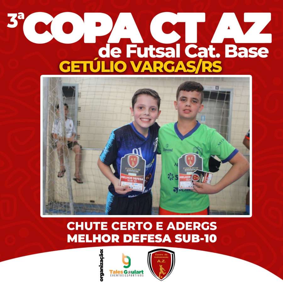 A terceira edição da Copa AZ mais uma vez foi um sucesso. A competição realizada ao longo do último sábado e domingo e reuniu 65 equipes, com jogos do Sub-7 ao Sub-15, e atraiu cerca de três mil pessoas ao Ginásio Municipal de Getúlio Vargas. As partidas definiram campeões, vice-campeões, goleadores e defesas menos vazadas de cada categoria.