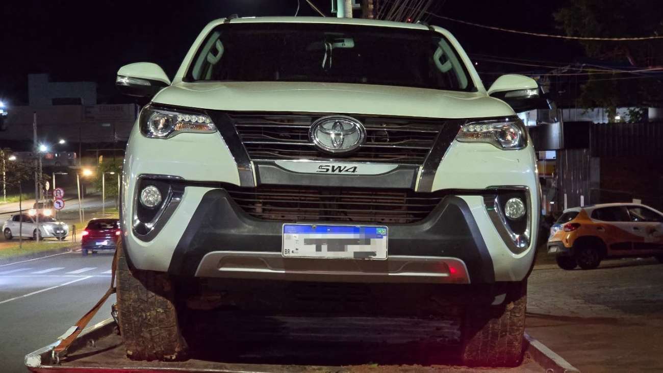 Uma das caminhonetes, de cor branca, possui registro no município de Canarana (MT). A outra, de cor preta, está registrada em São Miguel do Oeste (SC).