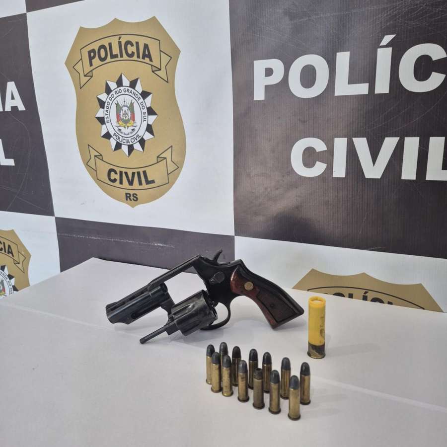 A ação, coordenada pela delegada de Polícia Rafaela Weiler Bier, ocorreu durante o cumprimento de um mandado de busca e apreensão. No local, os policiais apreenderam munições e um revólver calibre 38, identificado como objeto de furto.