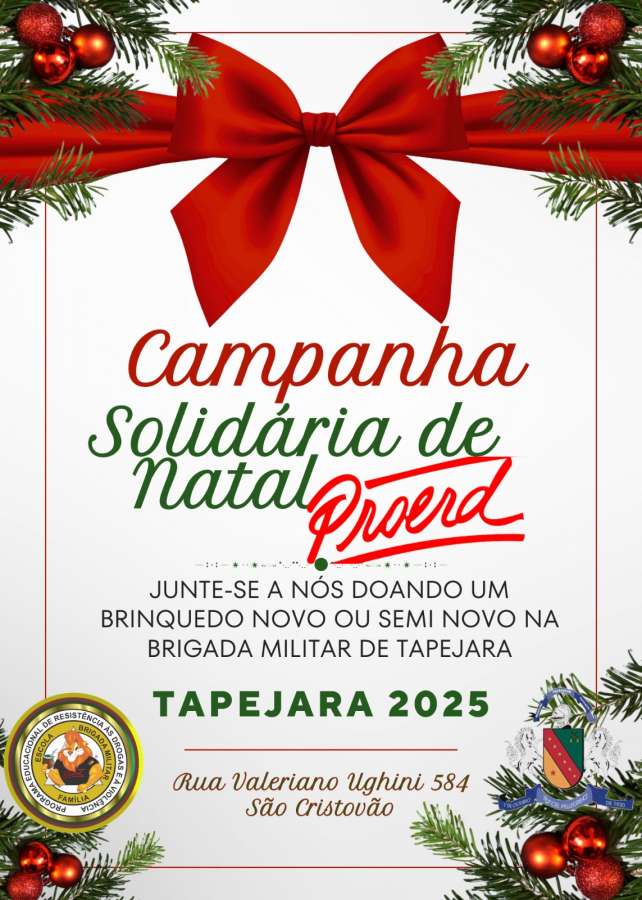 O prazo para fazer doações à Campanha Solidária de Natal, promovida pela equipe do Proerd (Programa Educacional de Resistência às Drogas e à Violência) de Tapejara, termina nesta segunda-feira (22).