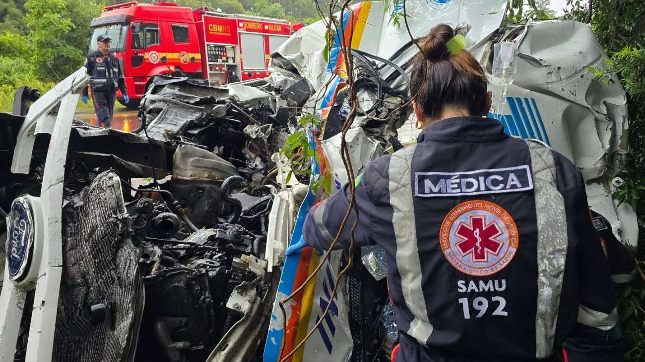 As equipes do Corpo de Bombeiros Militar de Passo Fundo realizaram o desencarceramento do motorista da van. Segundo informações preliminares, a van teria aquaplanado e, ao tentar recuperar a direção, o motorista perdeu o controle e colidiu frontalmente com o ônibus.