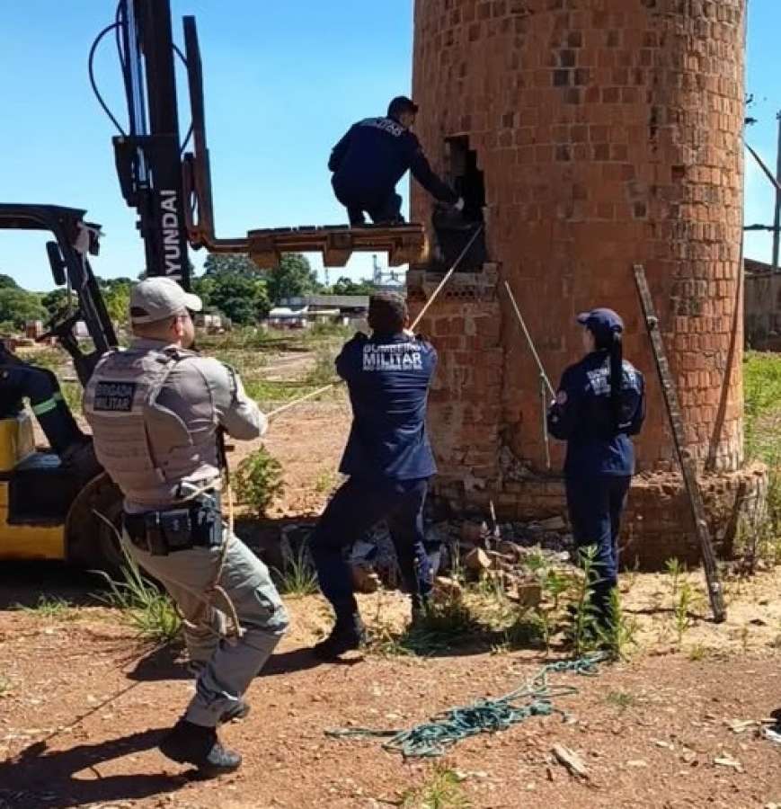A equipe policial foi acionada via COPOM após informações de que um homem estaria preso no interior de uma chaminé. No local, o responsável pela propriedade relatou ter ouvido gritos de socorro, motivando o chamado policial.