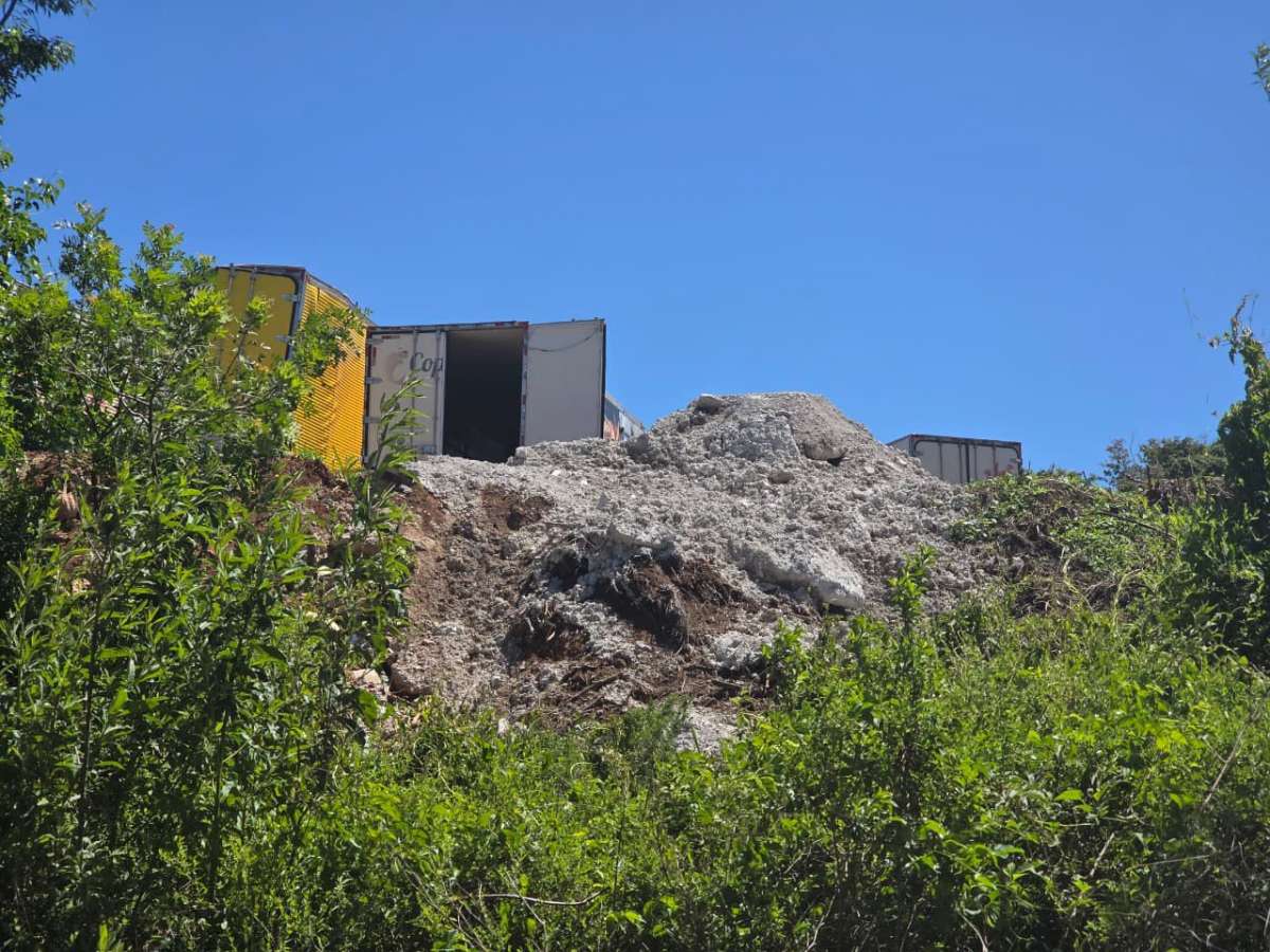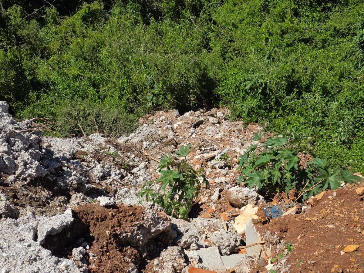 O aterro foi construído com a utilização de restos de materiais de construção, caliça, entulhos e outros resíduos sólidos, depositados diretamente sobre o solo, sem a adoção de medidas adequadas de controle ambiental. Nas proximidades do aterro irregular, foi identificada a presença de uma pequena vertente, localizada junto à área afetada, a qual, em razão da proximidade com os resíduos depositados, pode representar potencial risco de dano ambiental.