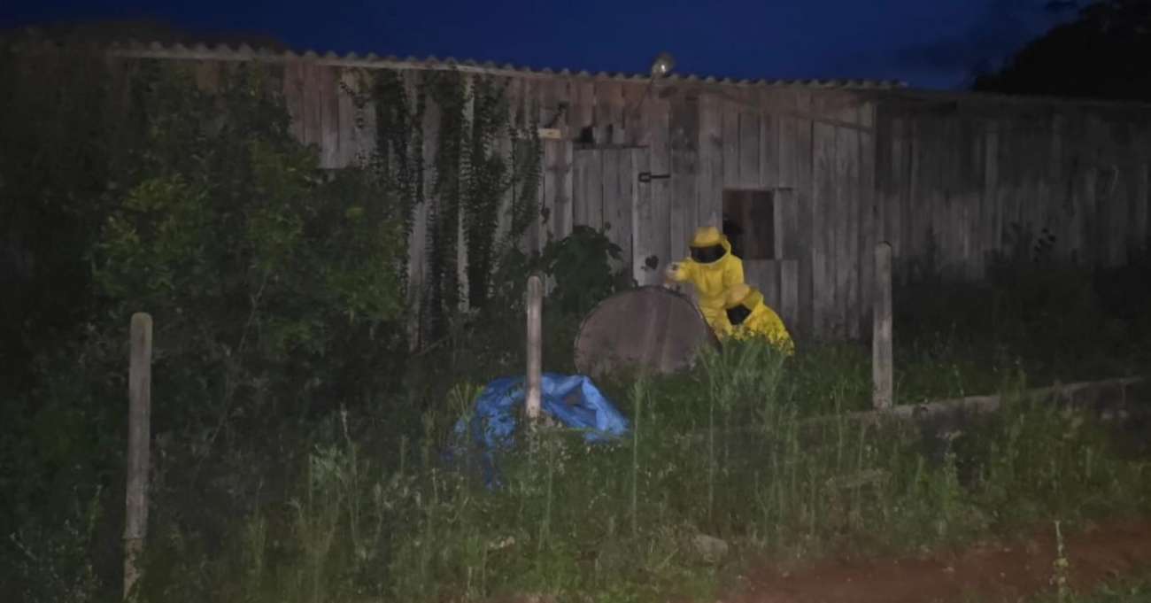 Como não havia apicultor disponível no município e havia risco iminente à vida de pessoas e animais, os Bombeiros adotaram, de forma excepcional, a medida de extermínio do enxame para controlar a situação e evitar uma tragédia.