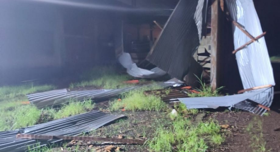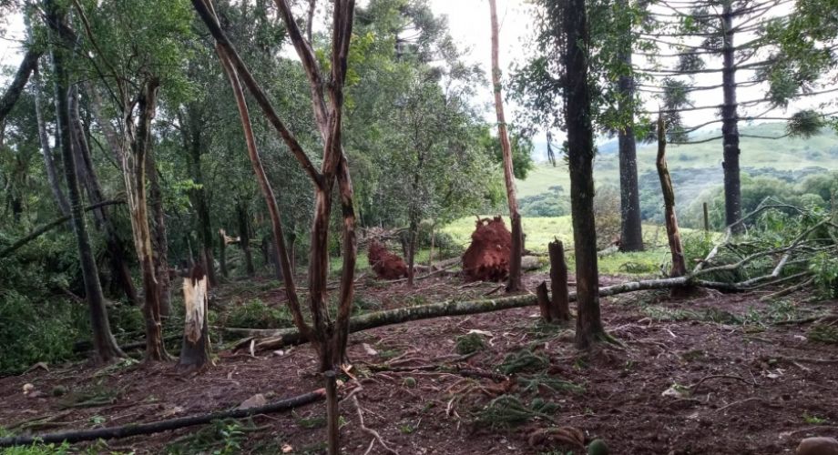 Em propriedades rurais próximas também foram registrados danos em galpões, com destelhamentos, pinheiros arrancados, danos em lavouras de milho e pipoca e outros.
