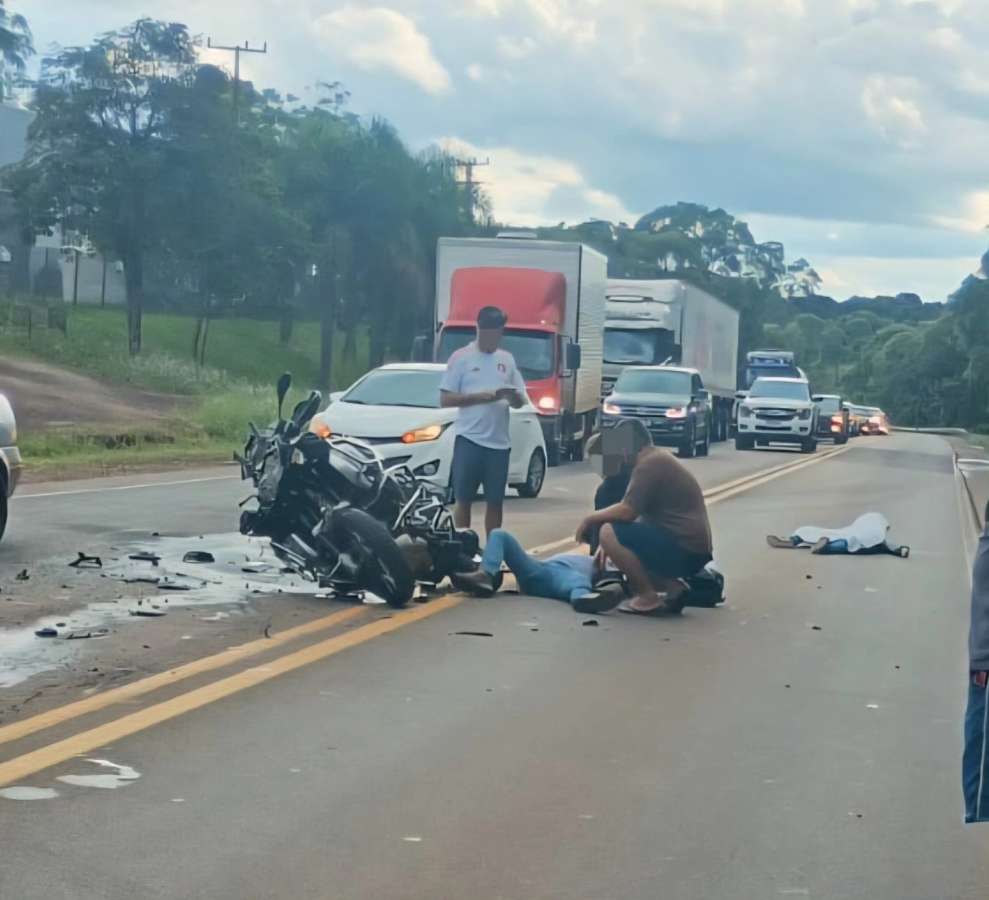Na tarde deste domingo (11), um grave acidente de trânsito foi registrado na RSC-153, em Passo Fundo, nas proximidades do Santuário Nossa Senhora Aparecida. A colisão envolveu uma motocicleta BMW e uma caminhonete Blazer.