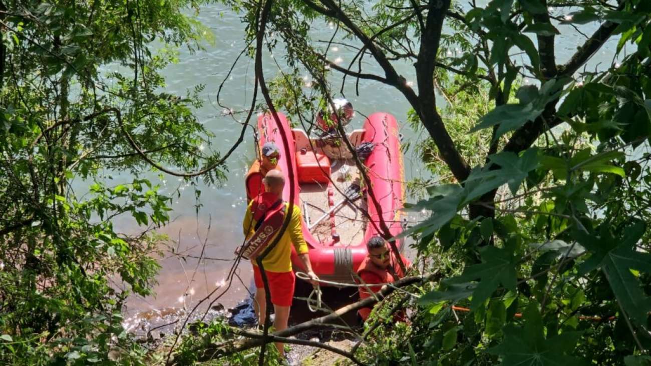 Equipes do Corpo de Bombeiros Militar, com auxílio de mergulhadores, atuam no local para tentar localizar o veículo e eventuais ocupantes.