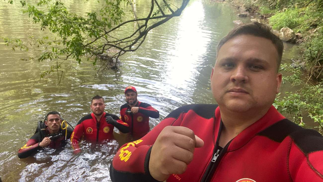 Corpo foi localizado a quatro metros de profundidade em poucos minutos; equipe atua em diferentes ocorrências em ambientes aquáticos, como resgates em águas rápidas, enchentes e alagamentos