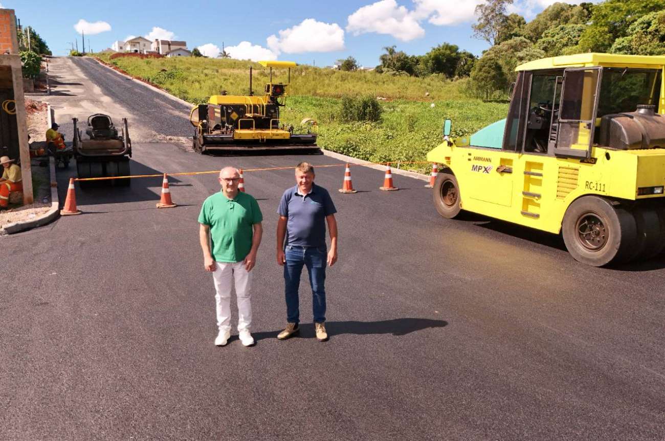 A pavimentação está sendo executada por meio da Secretaria de Infraestrutura, Mobilidade Urbana e Segurança Pública, sob responsabilidade do secretário Clairto Aimi, com o acompanhamento do prefeito em exercício, Rodinei Bruel (Gipe), que esteve presente no local junto ao secretário.