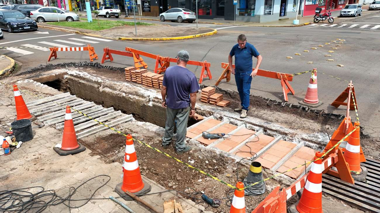 Está em andamento a obra na Avenida Sete de Setembro, esquina com a Rua Independência, em Tapejara, um ponto que há muitos anos demandava uma solução definitiva. Em função da execução dos trabalhos, o trânsito no local encontra-se temporariamente bloqueado, com previsão de intervenção por aproximadamente 30 dias, nesta primeira etapa.