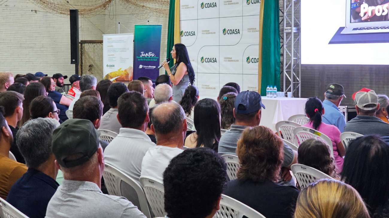 O ciclo começou nesta segunda-feira, 02/02, em David Canabarro, na Capela São Pelegrino. Na ocasião, Greici Rohr palestrou sobre o tema Cooperados e Coasa – uma aliança de prosperidade. Ela fez reflexões sobre o papel dos associados(as) na construção coletiva da cooperativa, destacando que a prosperidade é resultado de uma aliança construída com participação e confiança.