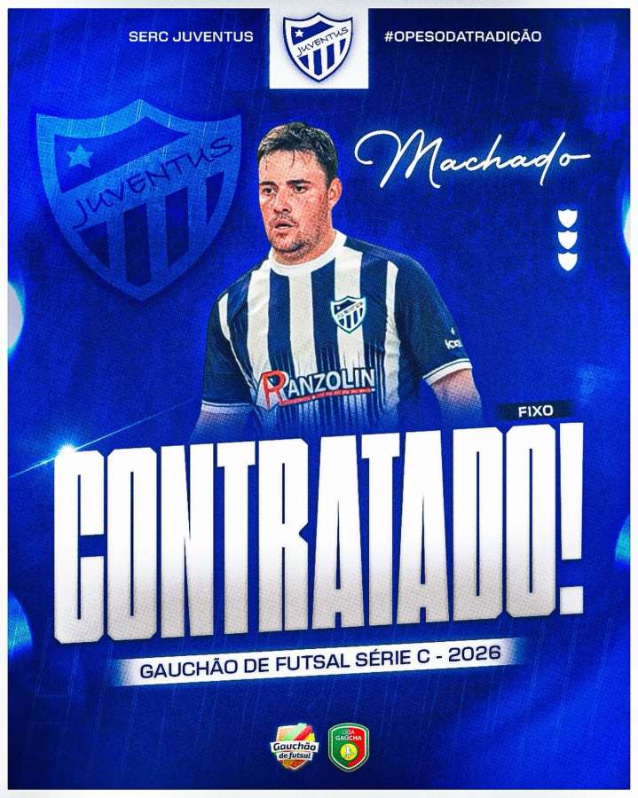 A SERC Juventus, de Sananduva, segue o planejamento para a temporada 2026 do futsal e confirmou quatro novos nomes que passam a integrar o elenco adulto. O clube disputará o Gauchão de Futsal Série C e, como novidade para este ano, oficializou sua filiação à Liga Gaúcha de Futsal, fortalecendo sua participação nas competições estaduais.