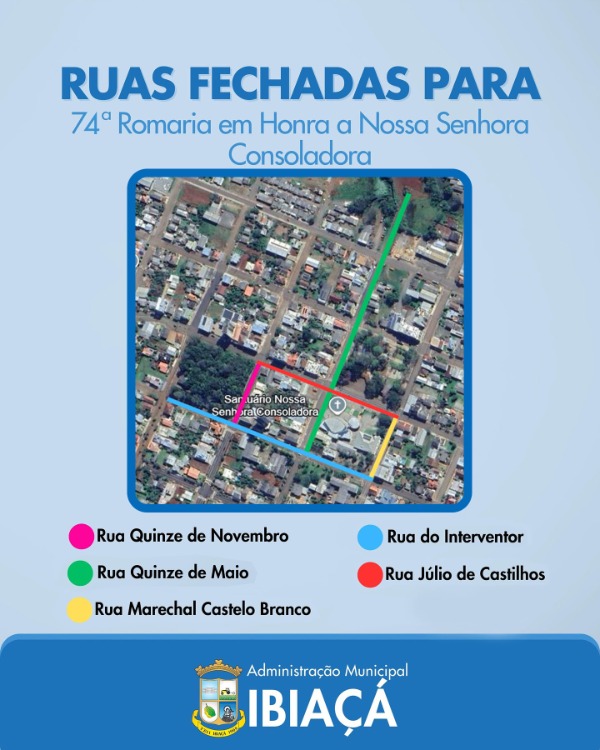 O trânsito nas principais ruas da área central de Ibiaçá vai sofrer restrições durante a Romaria de Nossa Senhora Consoladora. O anúncio foi feito na manhã desta quarta-feira (18), pela Secretaria de Serviços Urbanos do município.