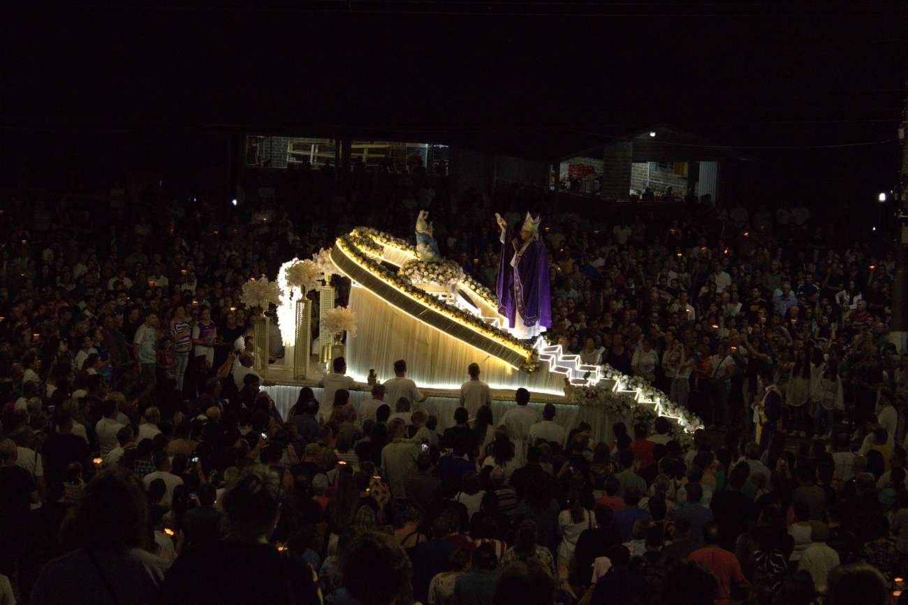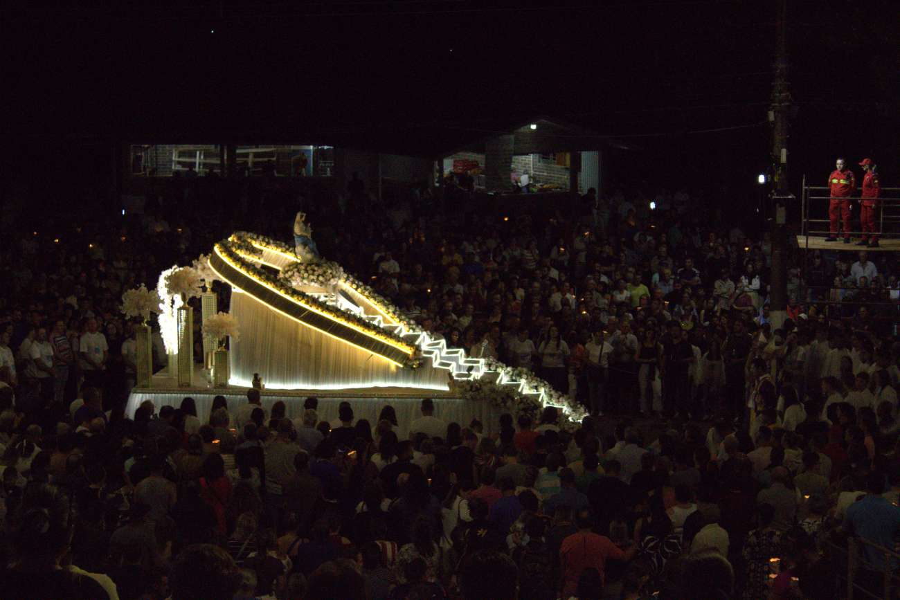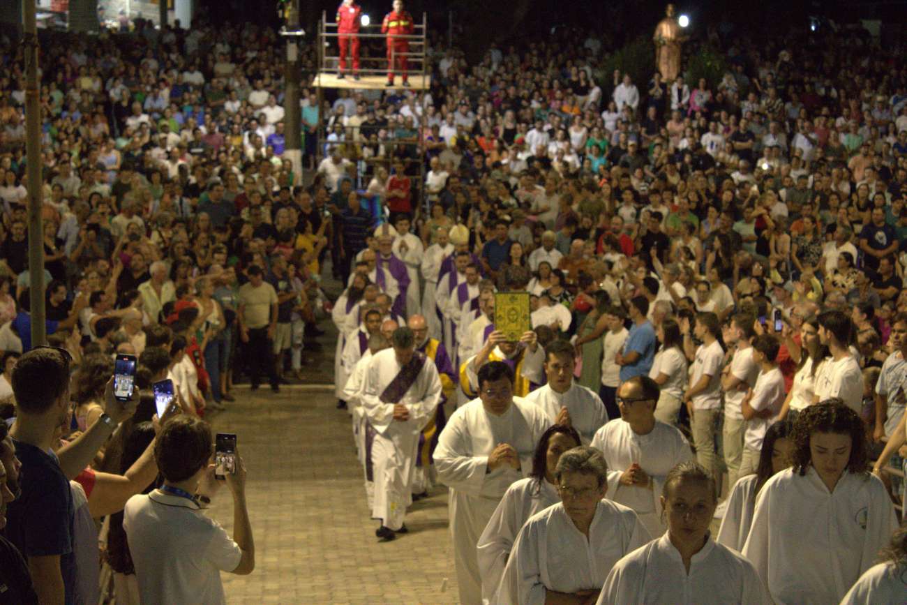 Milhares de fiéis participaram, na noite deste sábado (21), da missa campal da 74ª Romaria de Nossa Senhora Consoladora, em Ibiaçá. A celebração foi presidida pelo bispo auxiliar de Porto Alegre, Dom Juarez Albino Destro, e contou com a tradicional procissão luminosa e coroação de Nossa Senhora Consoladora.