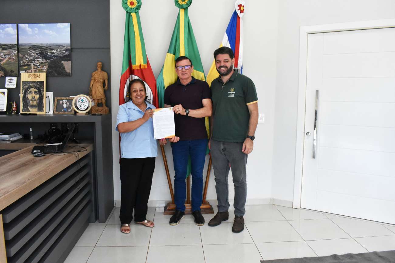 Participaram do encontro a presidente da entidade, Ivanir Rodigheri, e o diretor financeiro Jeferson Favretto, ocasião em que foi reforçada a parceria estabelecida por meio do Termo de Fomento nº 001/2026.