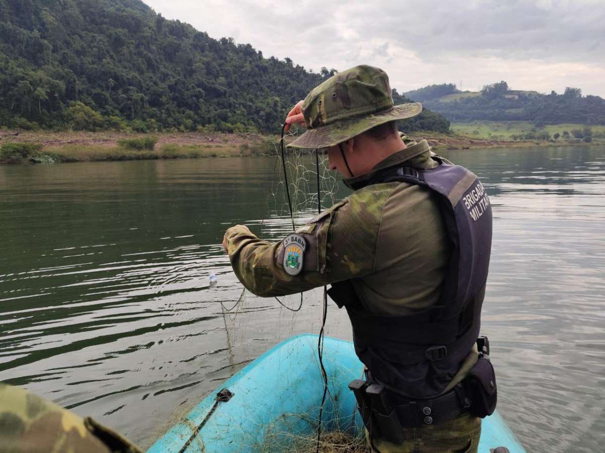 Durante a ação na UHE Foz do Chapecó, a equipe do 3º BPAmb BM localizou e retirou do Rio Uruguai aproximadamente 1.450 metros de redes de pesca e 250 metros de espinhéis, instalados de forma irregular. Não foi possível identificar os responsáveis pelos materiais apreendidos, que serão inutilizados, conforme legislação ambiental.